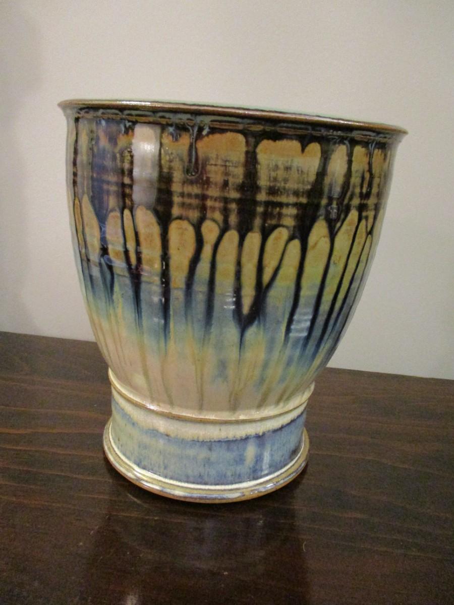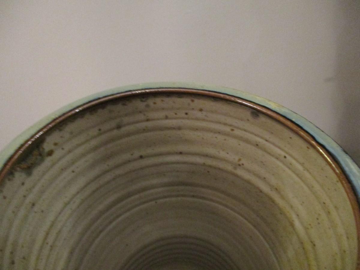 Signed Blue Drip Glaze Studio Art Pottery - Vase 8 1/4" Tall