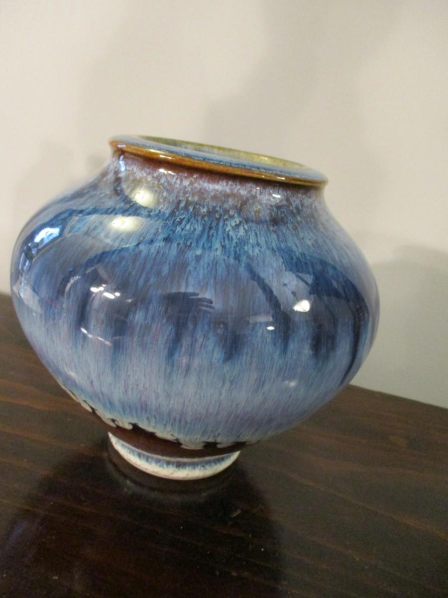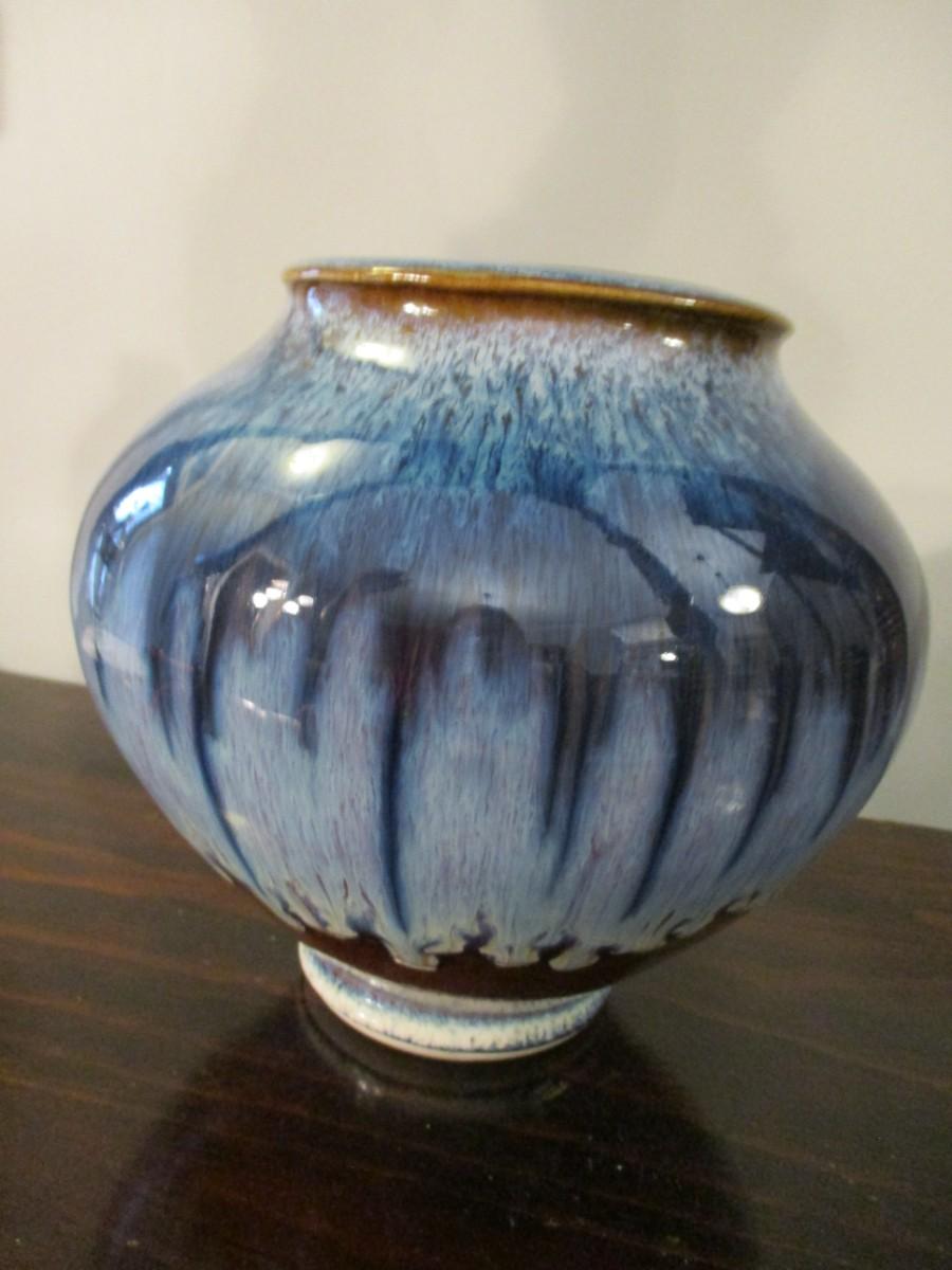Signed Blue Drip Glaze Studio Art Pottery 7"