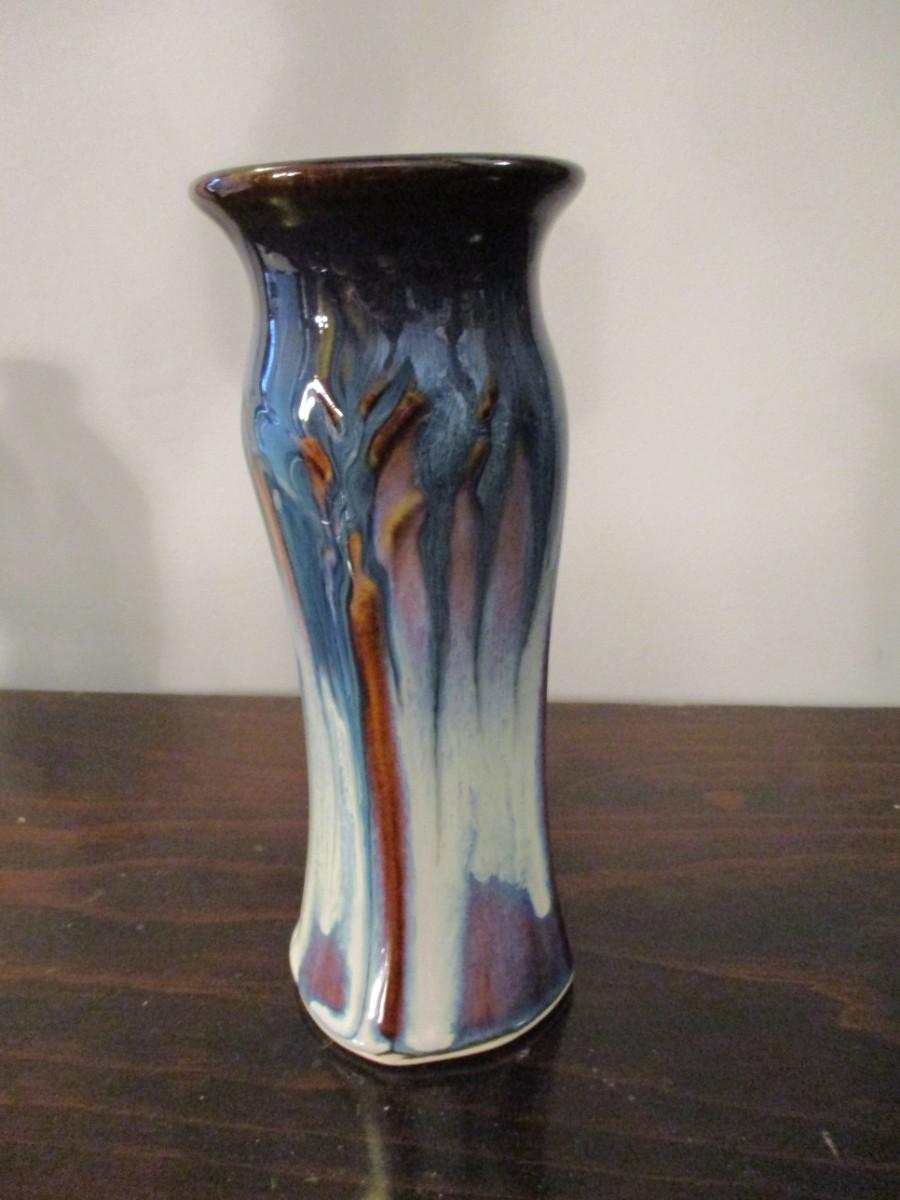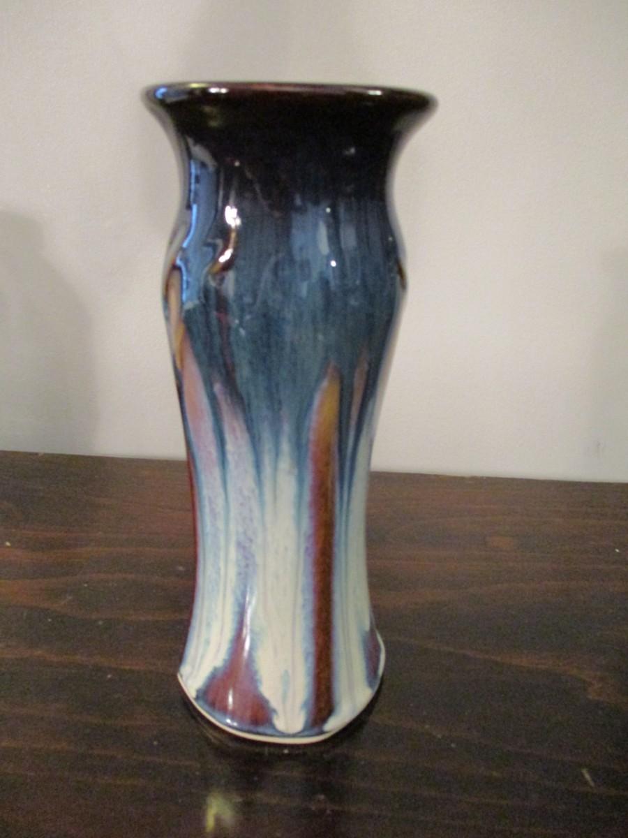 Signed Blue Drip Glaze Studio Art Pottery - Vase 7 1/4"