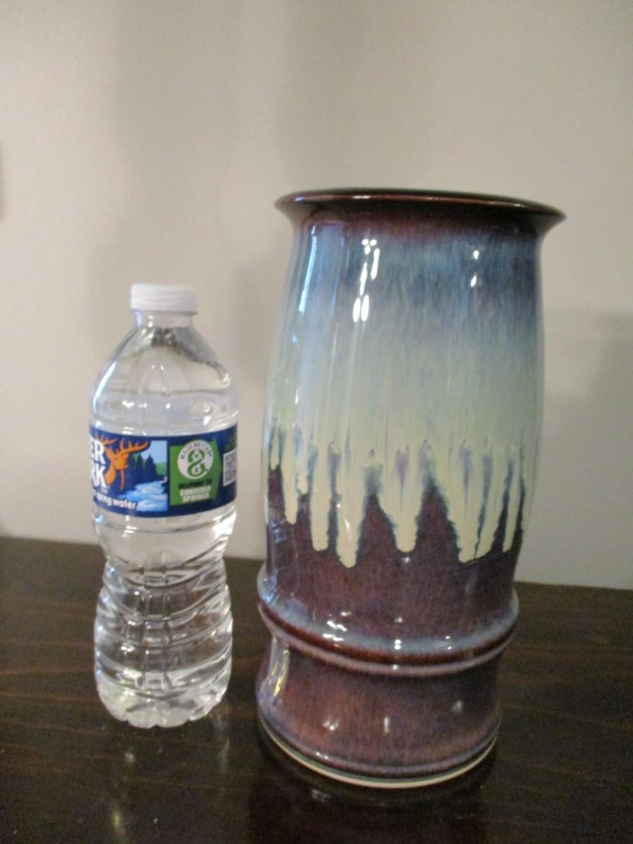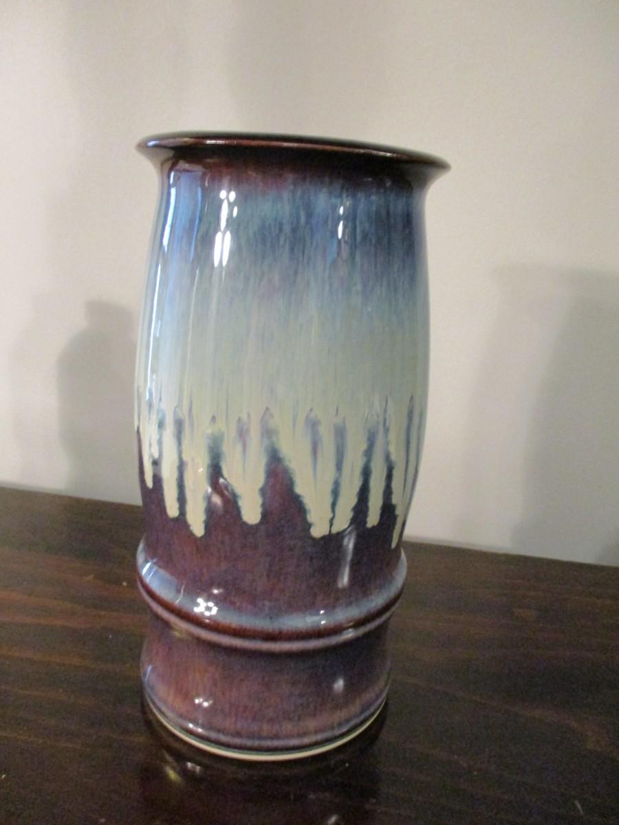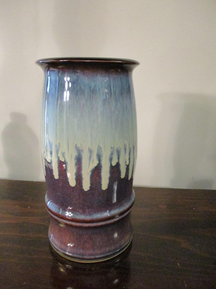 Signed Blue Drip Glaze Studio Art Pottery - Vase 9 1/2"
