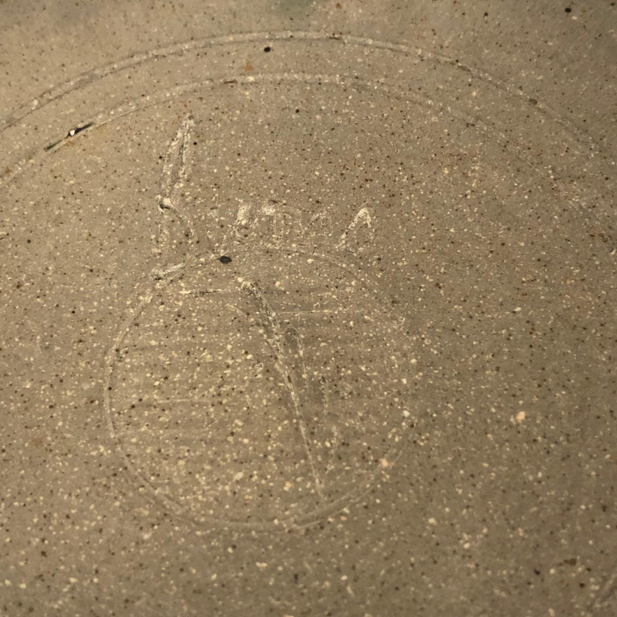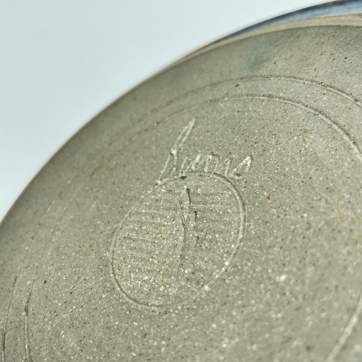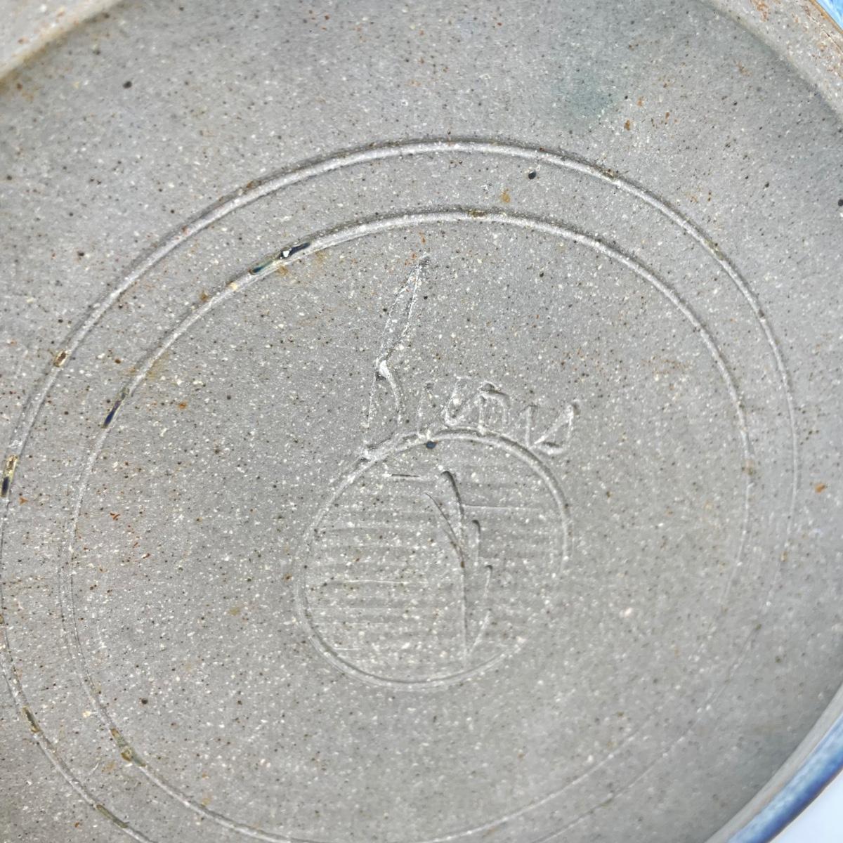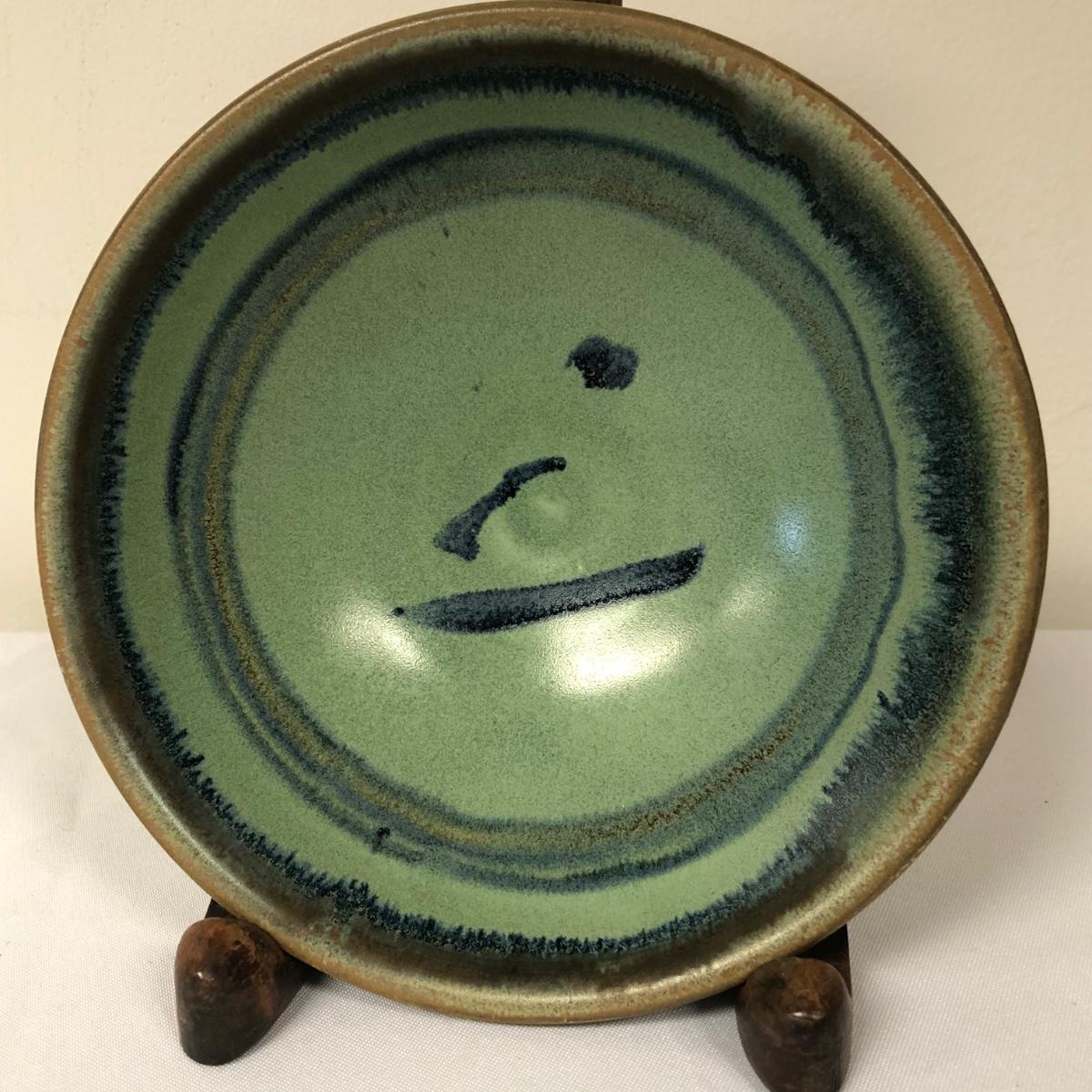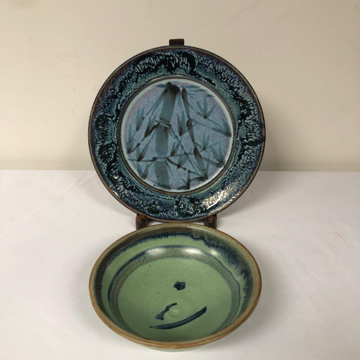 This lot includes two beautiful pieces of pottery. Both are signed (see photos and pencil rubbing). The blue plate measures 9” in diameter and the bowl measures 6.5” in diameter. Shipping Available.