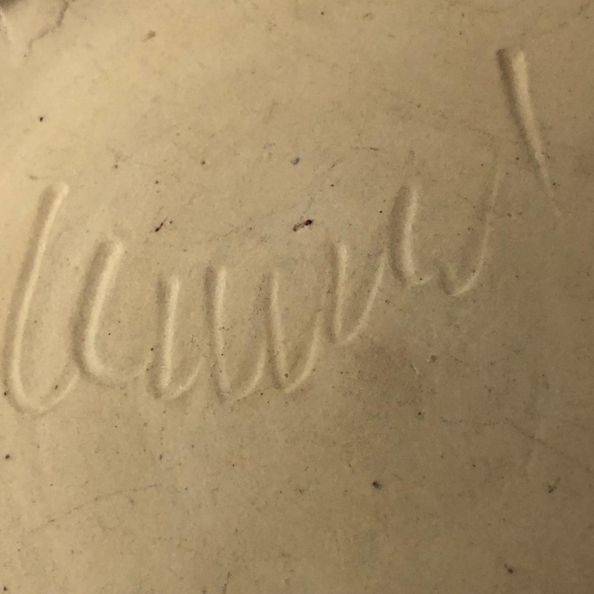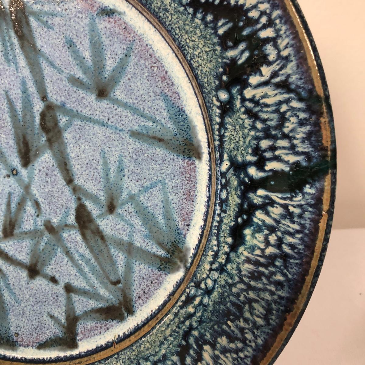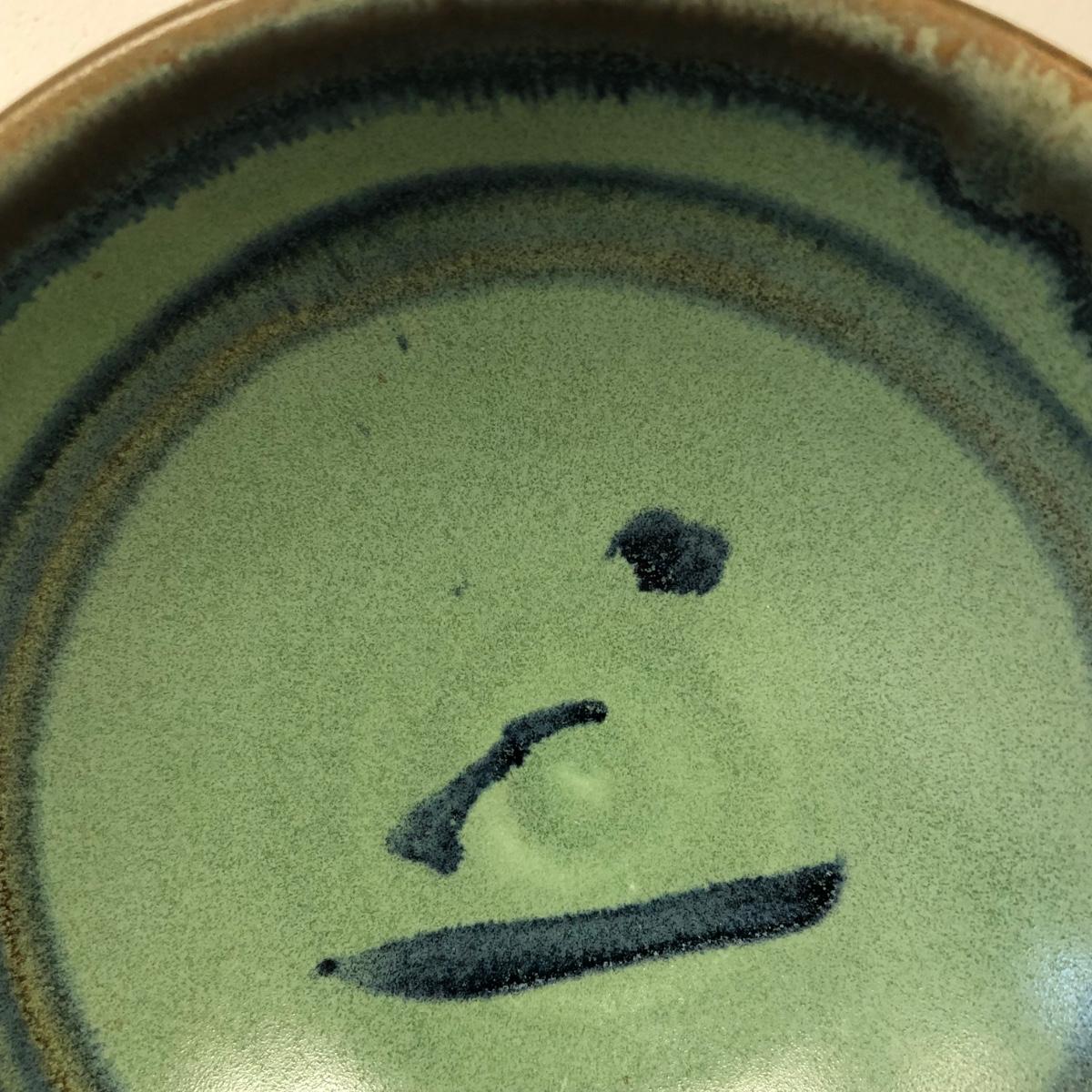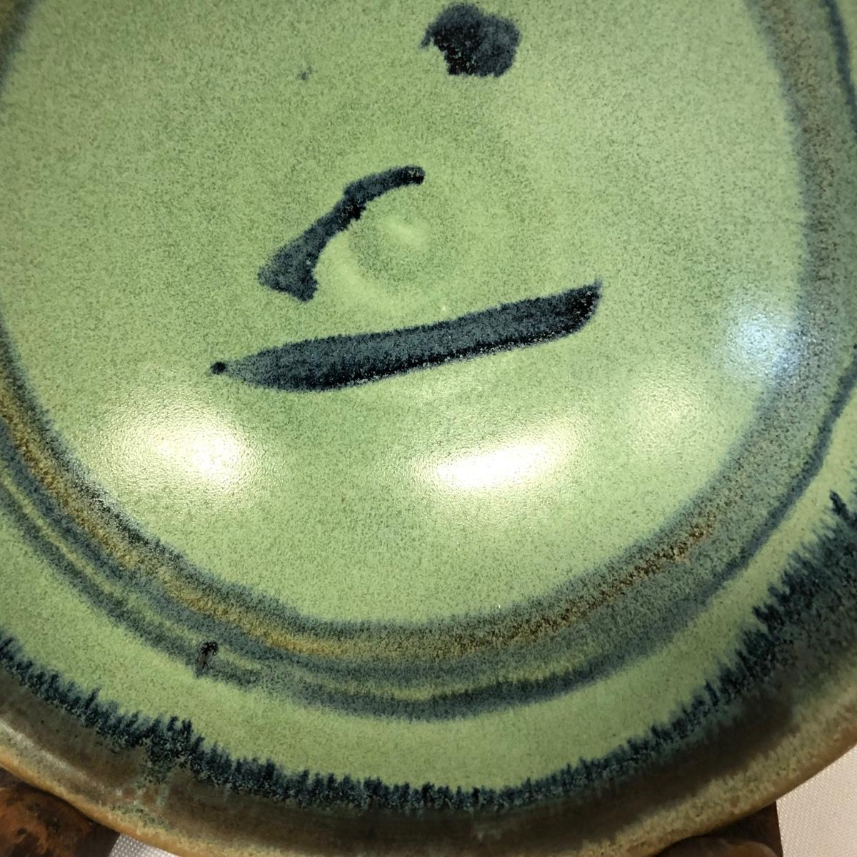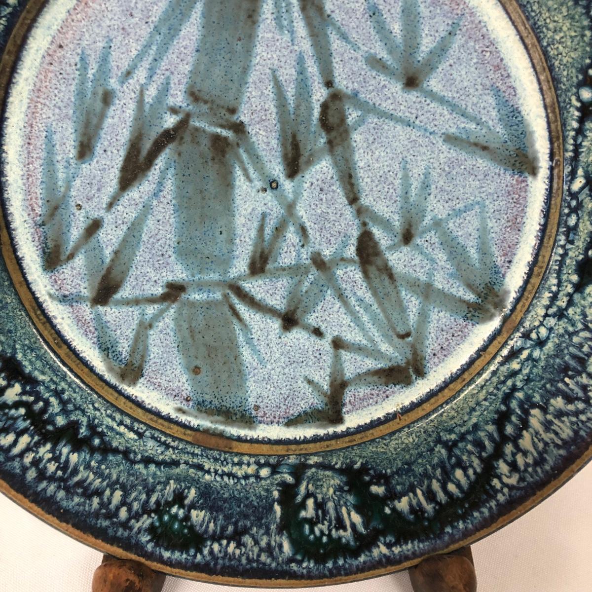This lot includes two beautiful pieces of pottery. Both are signed (see photos and pencil rubbing). The blue plate measures 9” in diameter and the bowl measures 6.5” in diameter. Shipping Available.