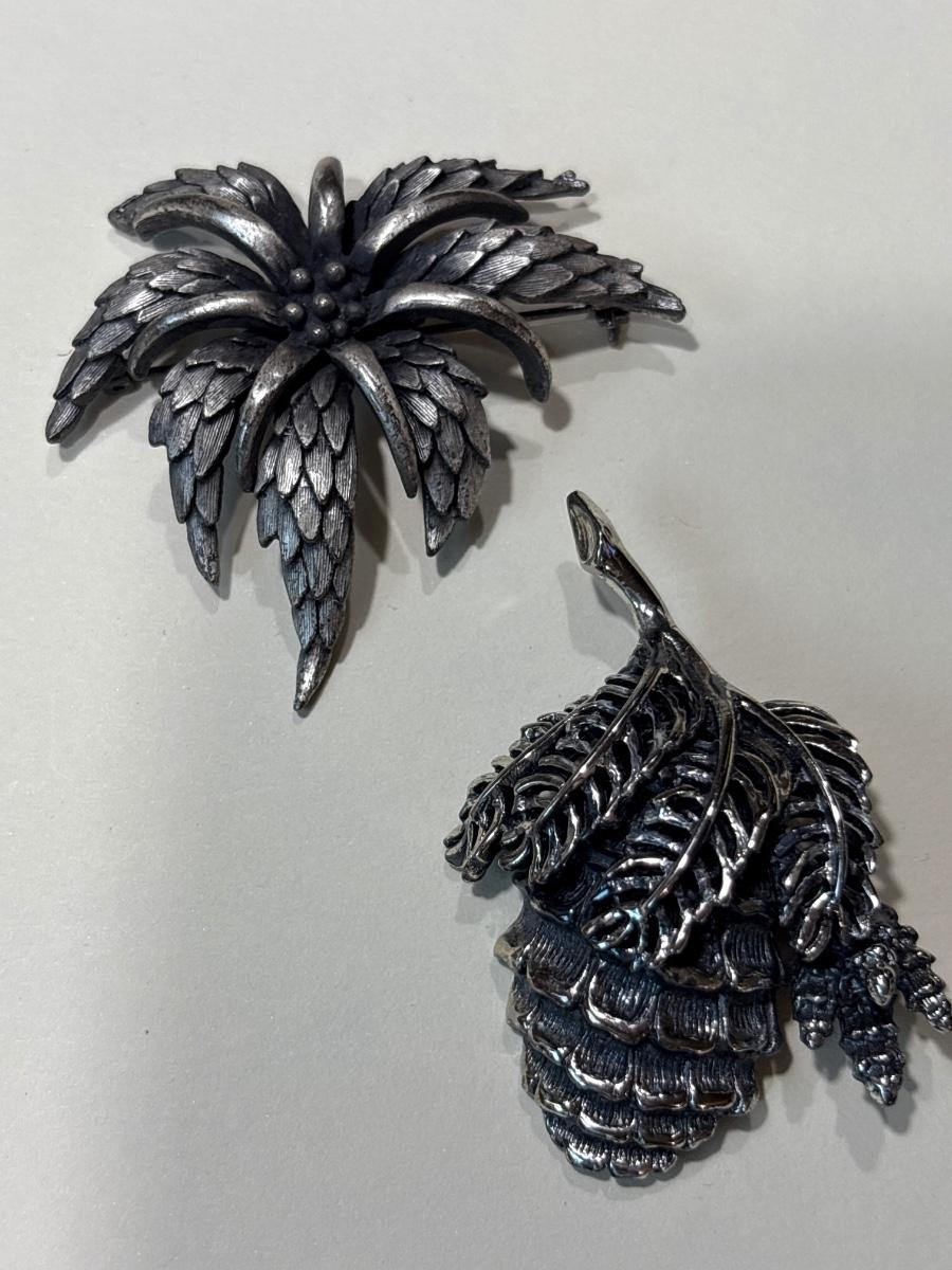 Signed Botticelli acorn brooch & floral brooch
