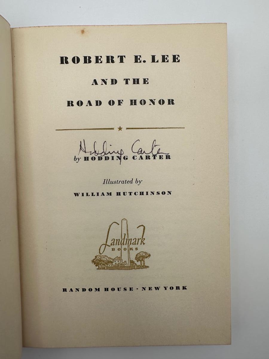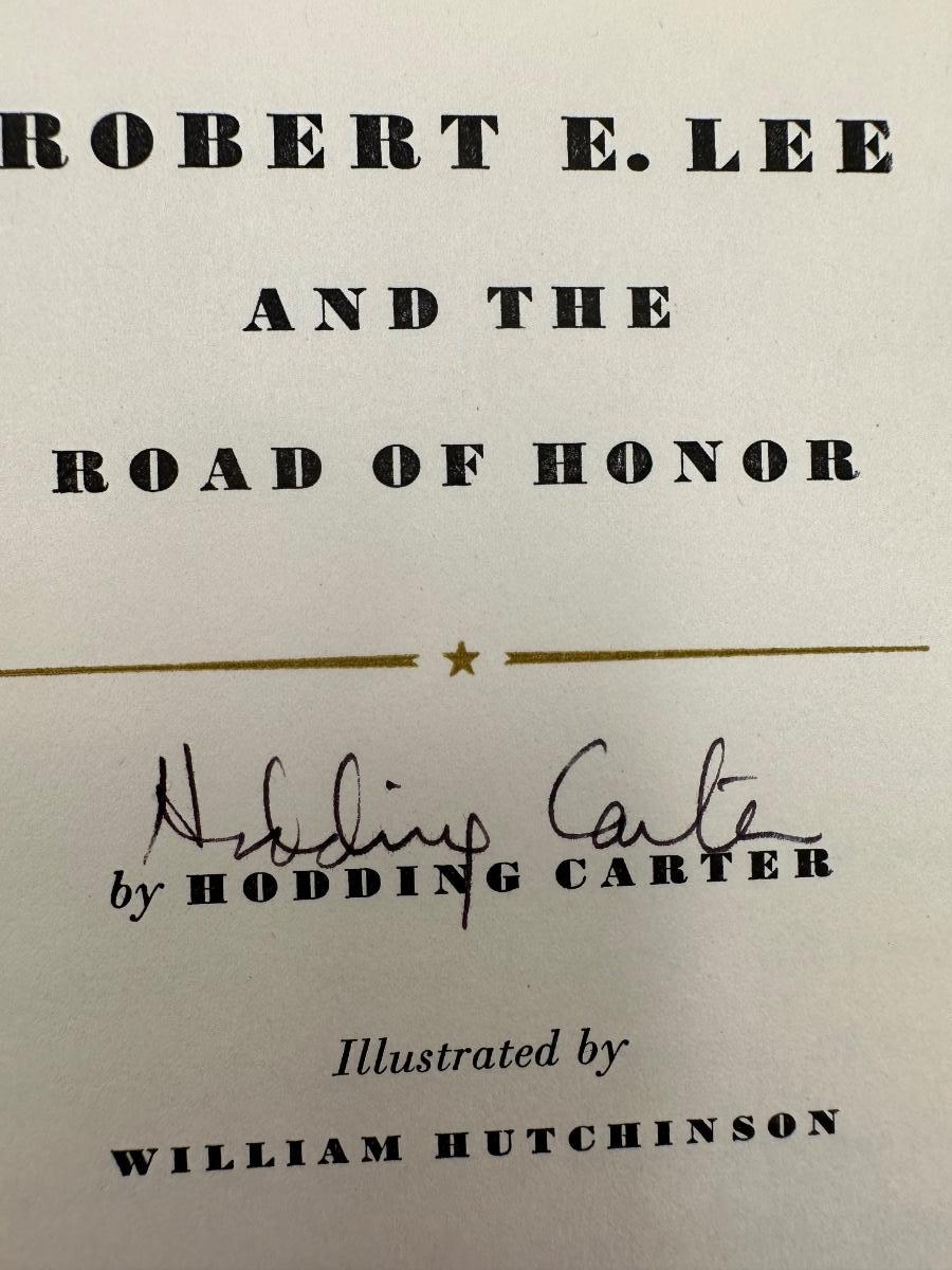 SIGNED by Author, Hodding Carter. Robert E. Lee and the Road of Honor