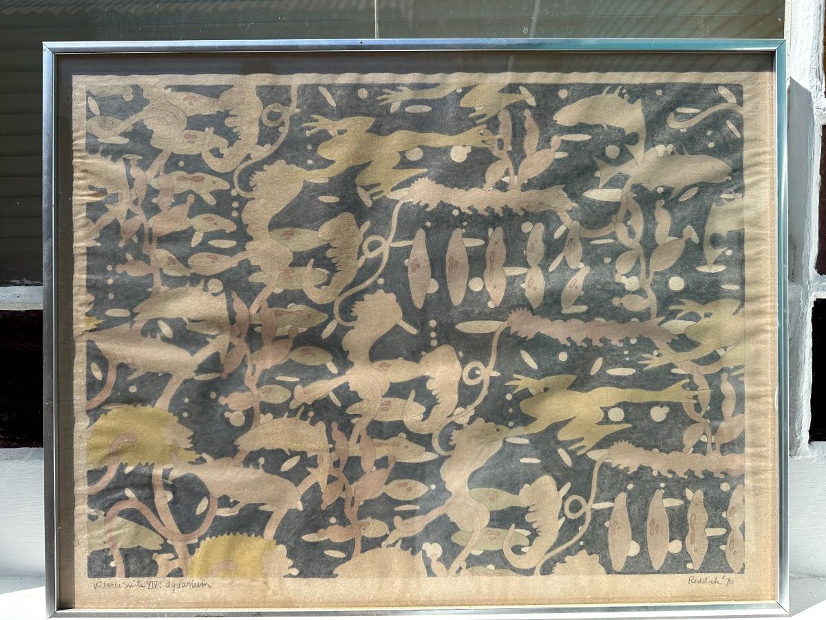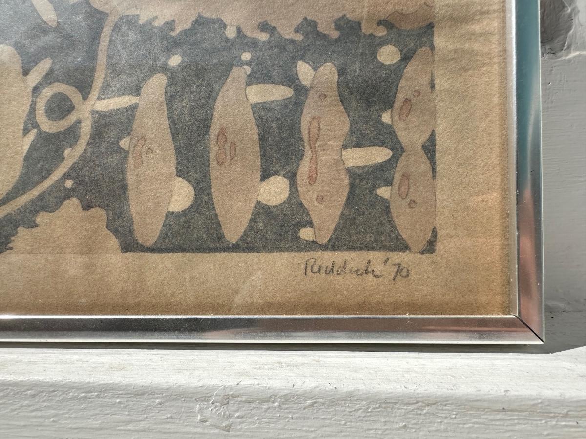 Signed and titled in pencil by artist, Reddick. 1970. The art seems to have some fading and needs to be smoothed out.