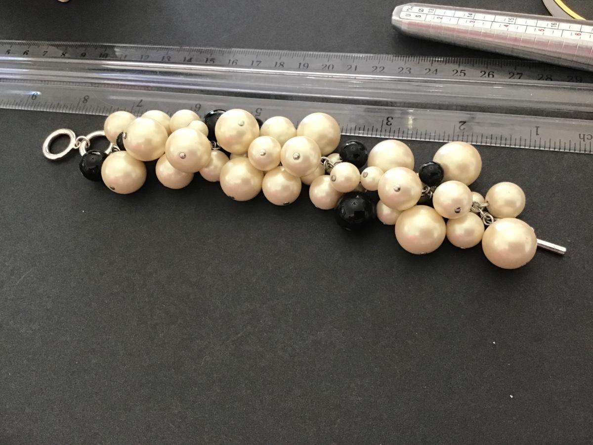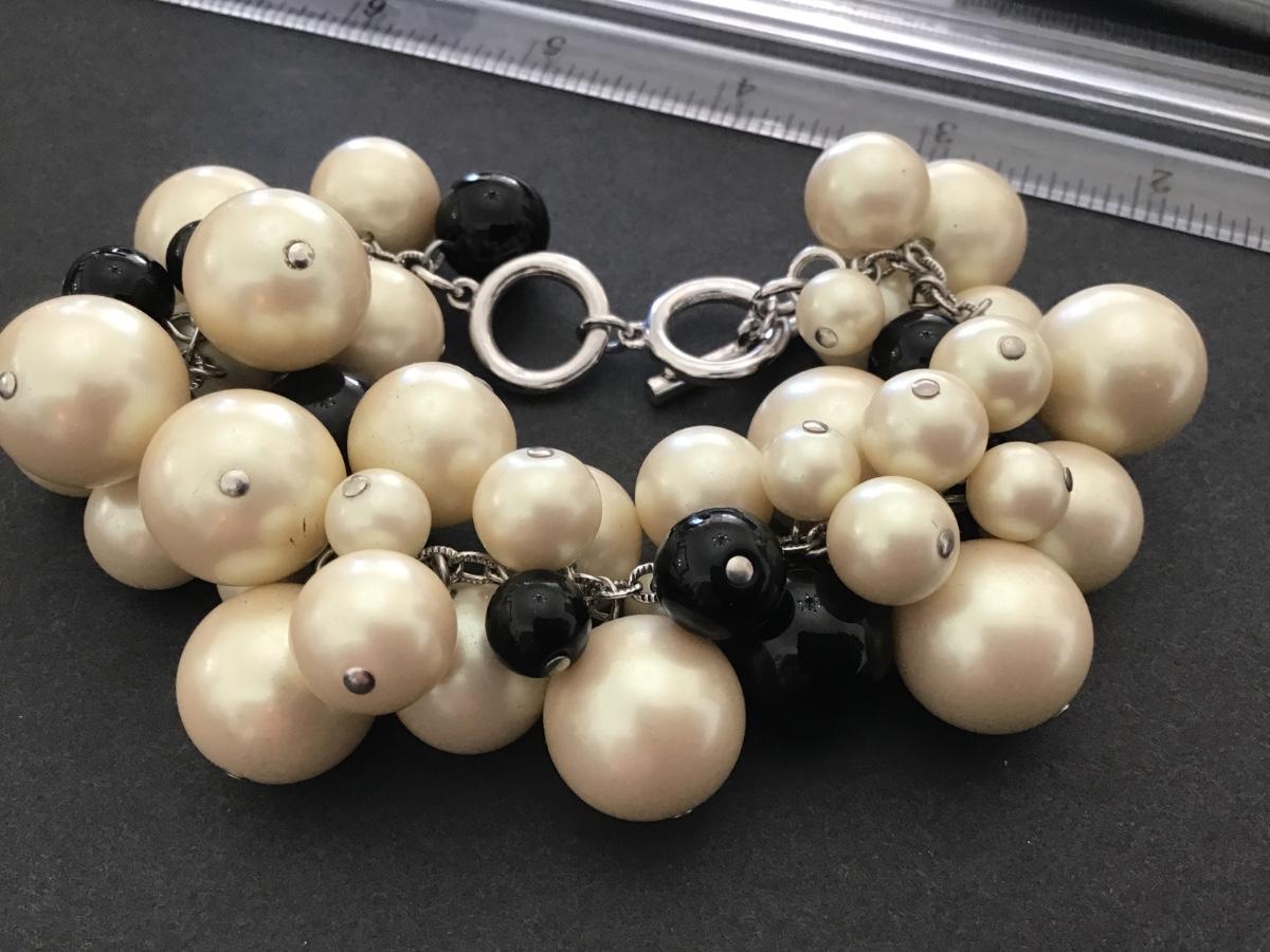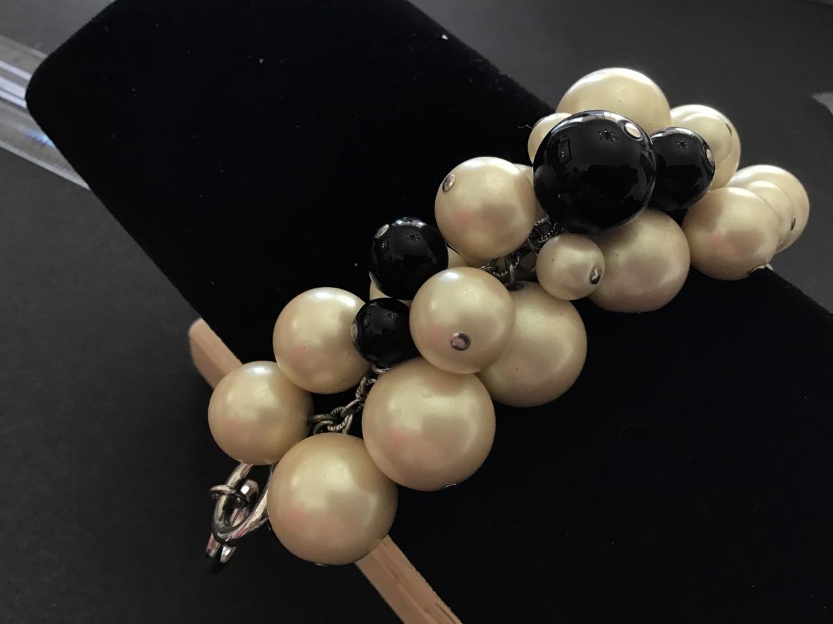 Signed CarolLee Pearl Affair Black White Pearlzed Cluster Bracelet