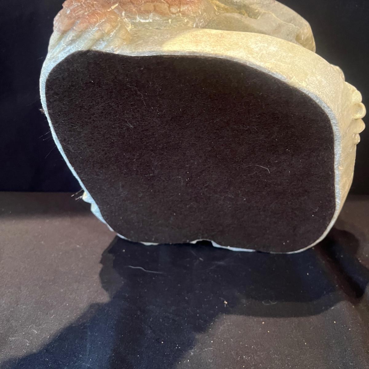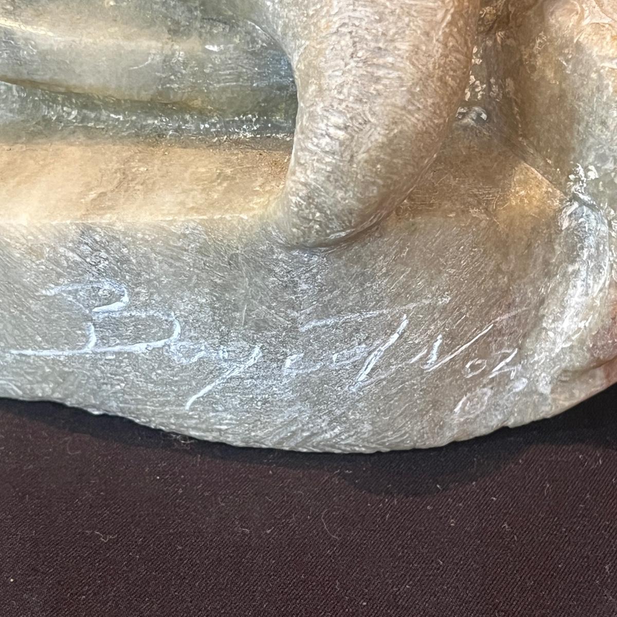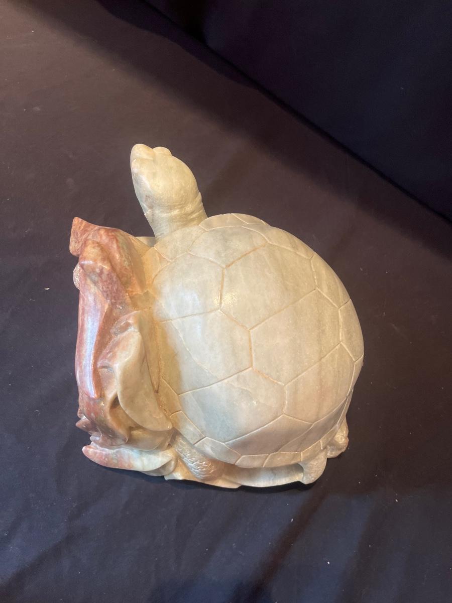 This stone turtle is carved and signed and measures 11” x 8” x 7”H. Piece is heavy.