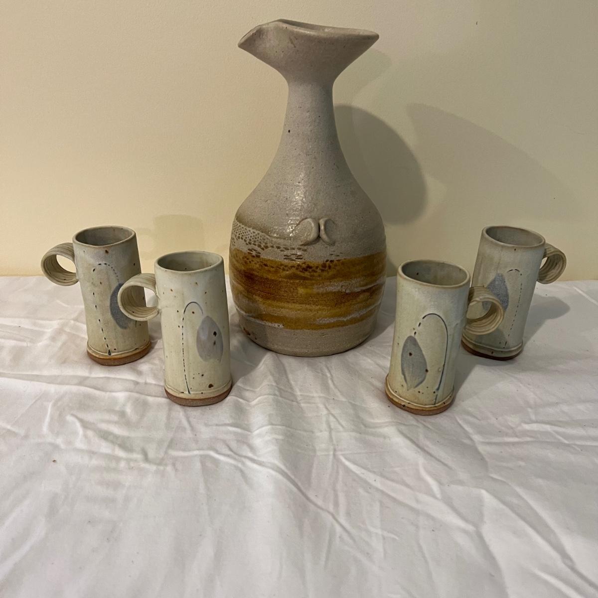 Signed Ceramic Pitcher and Cups (2BC2-MK)