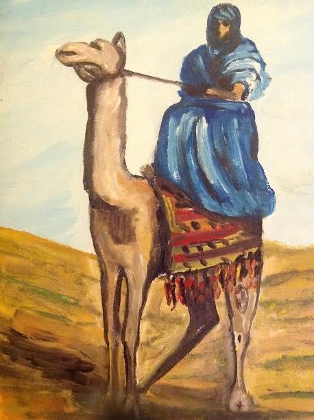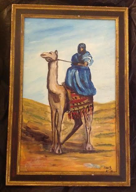 Description: Signed Chakir oil painting depicting Arab Male riding a camel in the desert. Medium:Oil on canvas. Dimensions approximate Image: 27.5 x 18 Frame/25.5\" x 16 Image. Shipping cost: Domestic: Flat-rate of $40.00 to anywhere within the contiguous U.S. except to California, Hawaii & Alaska..