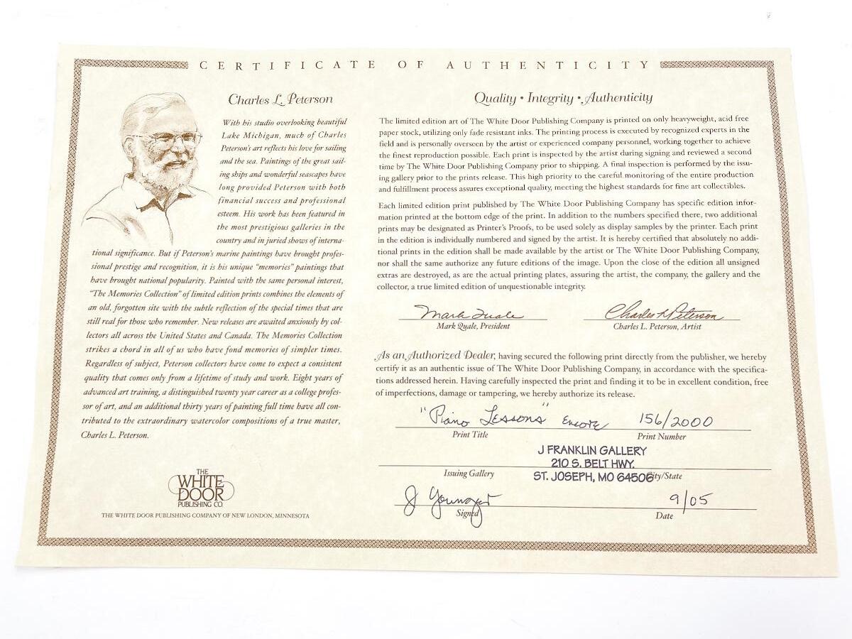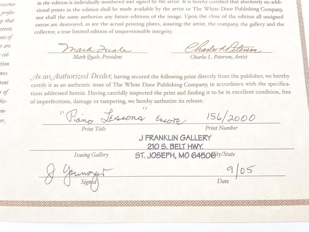 *SIGNED* CHARLES L. PETERSON “PIANO LESSONS” LIMITED EDITION FRAMED PRINT - 156/2000