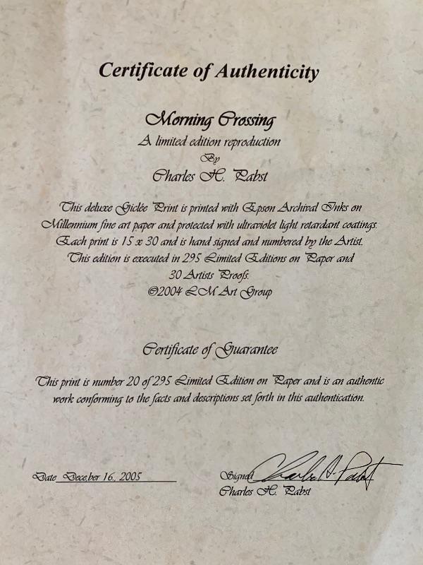 Signed Charles Pabst Paper Glicee" Morning Crossing " #20/295