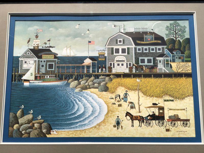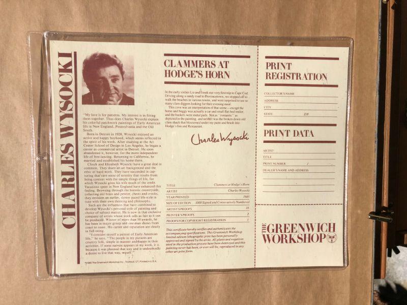 Beautiful and quality lithograph, signed and limited edition numbered Charles Wysocki. Titled, "Clammers at Hodge's Bay". Quality Framing. Very good condition.