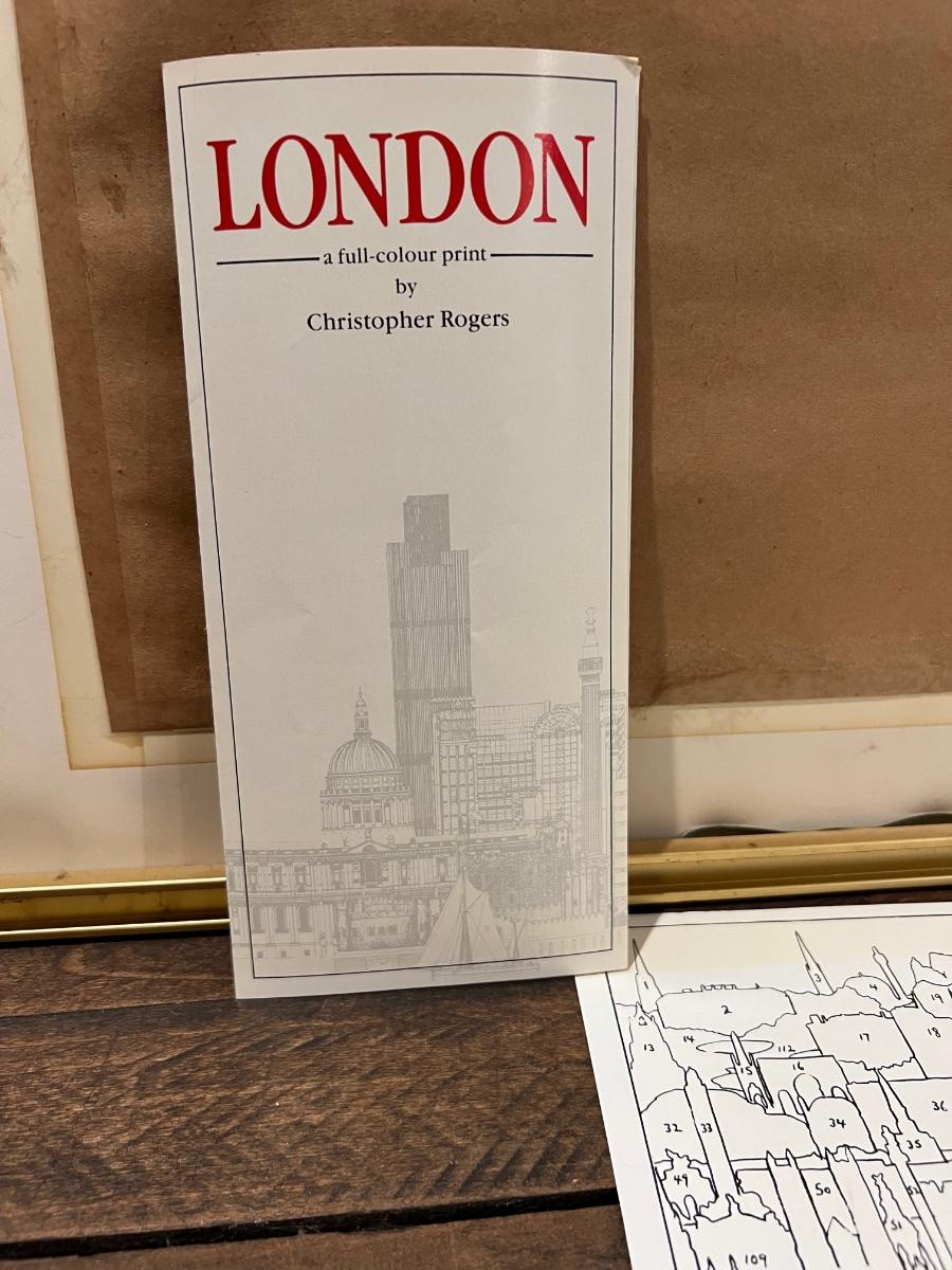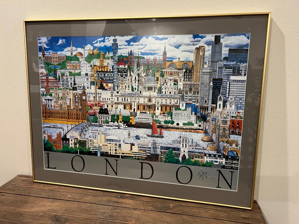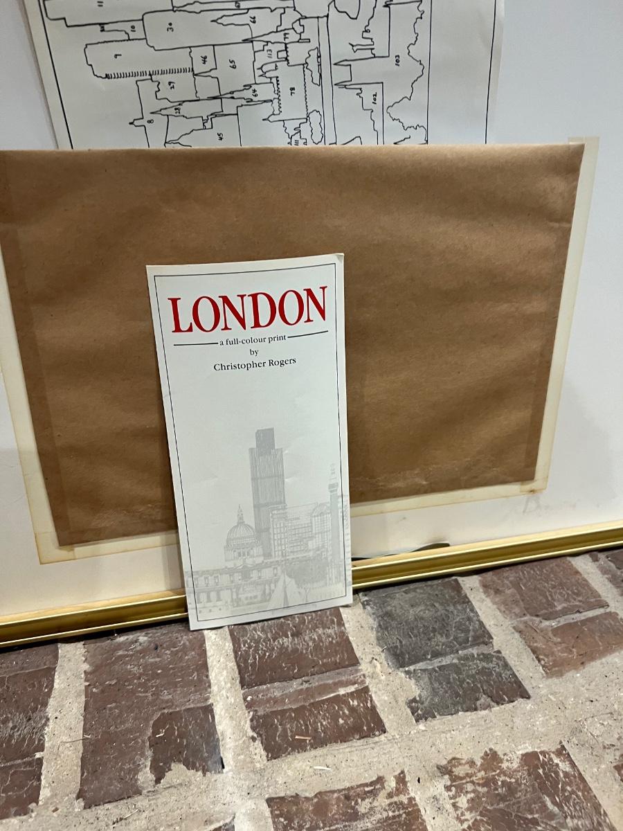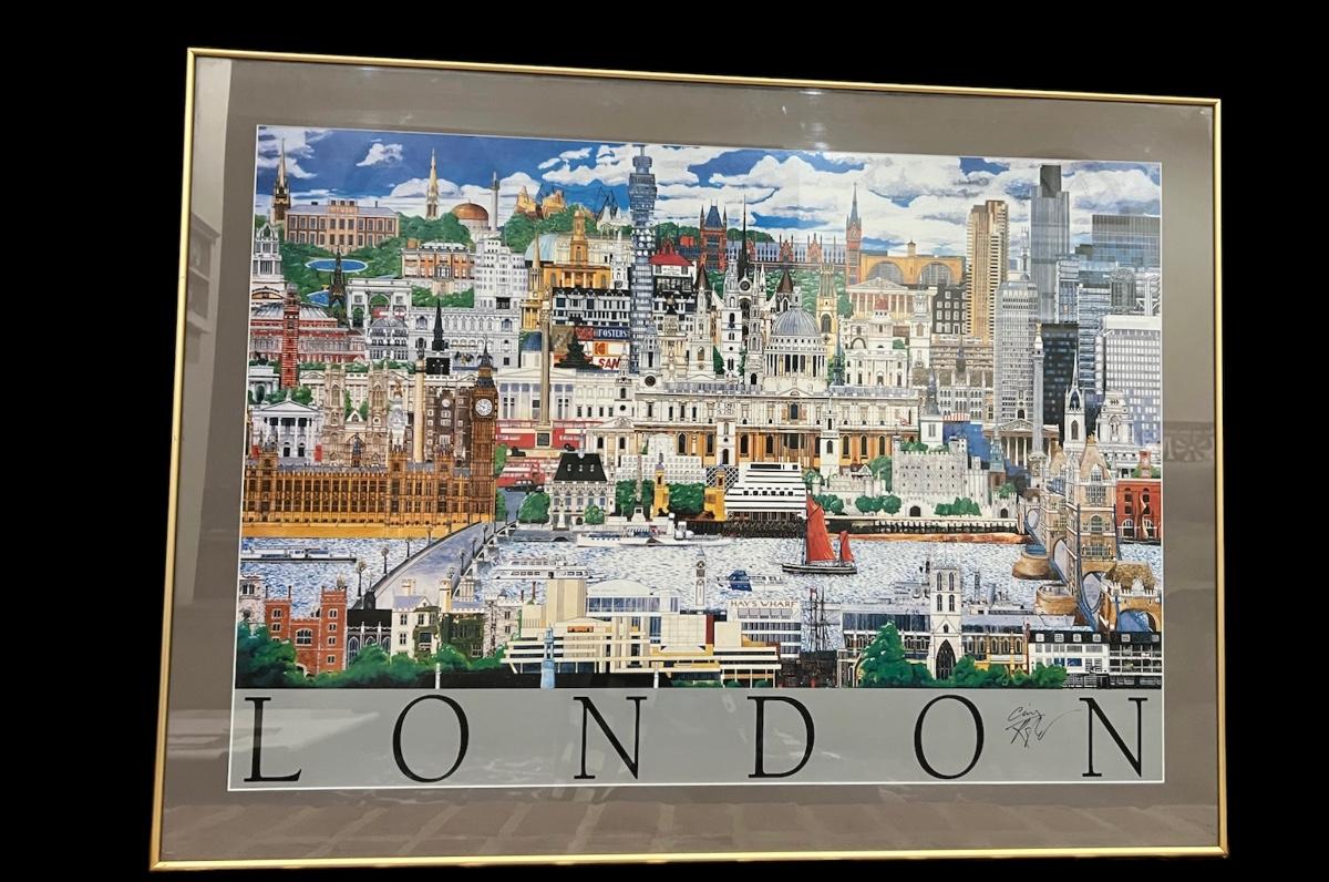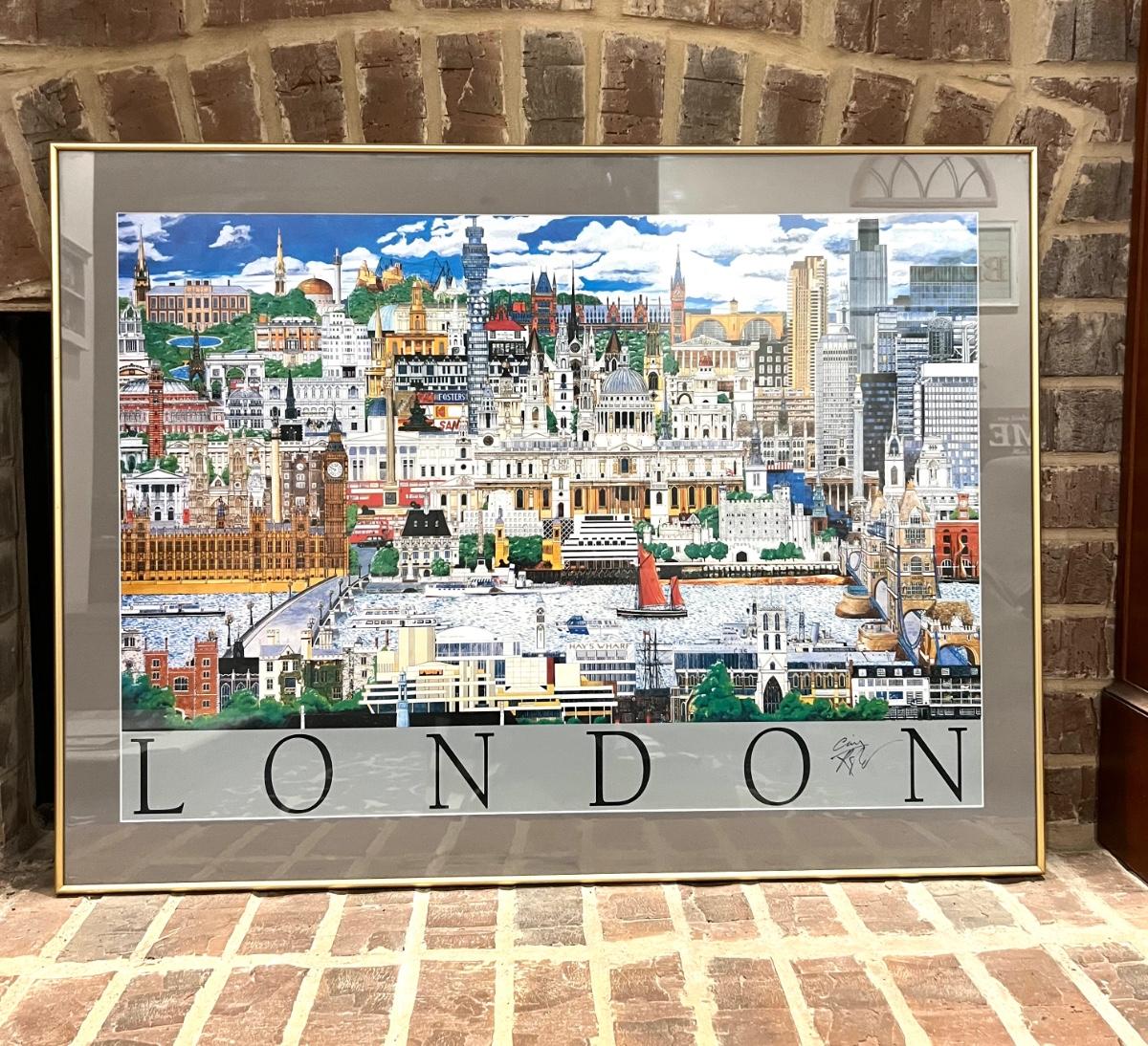 Signed CHRISTOPHER ROGERS "LONDON" LARGE SIGNED, matted and framed measures 39 inches wide and 29 inches tall.