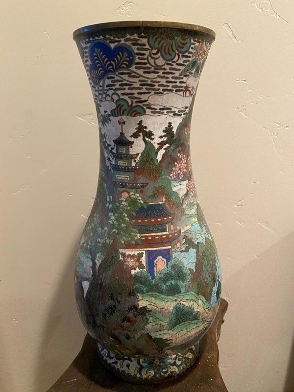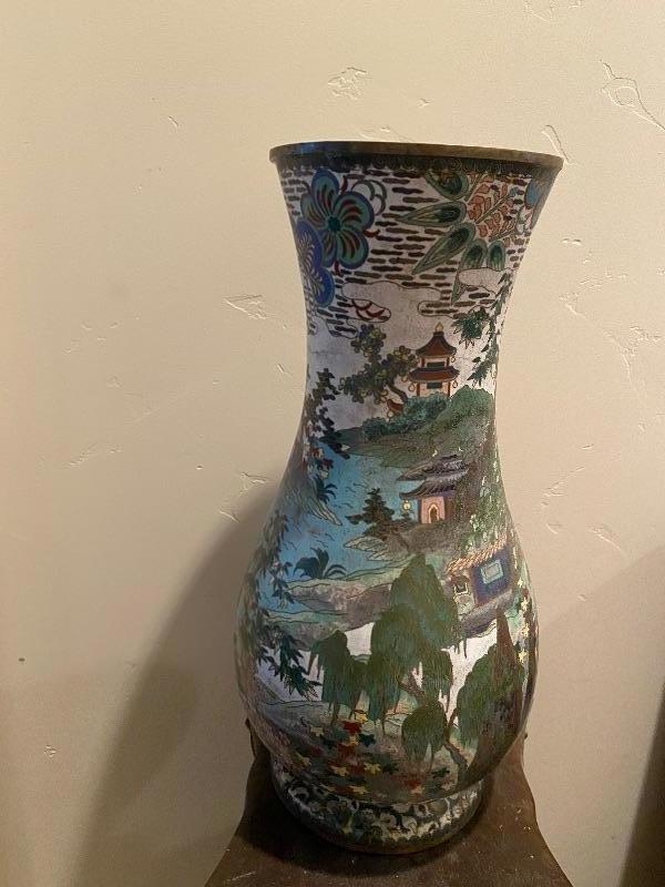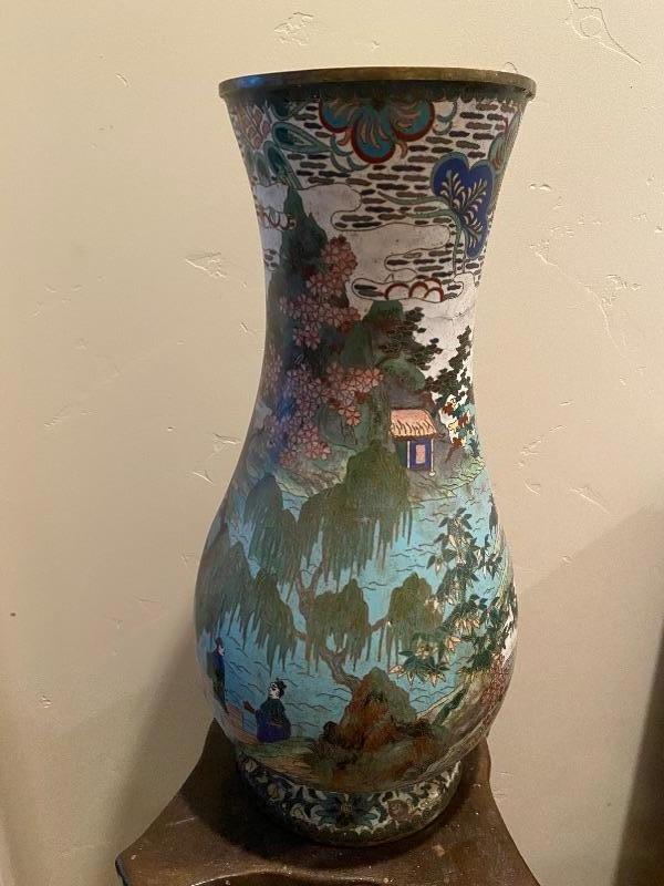 Signed Cloisonne Asian 17-3/4" Tall Vase