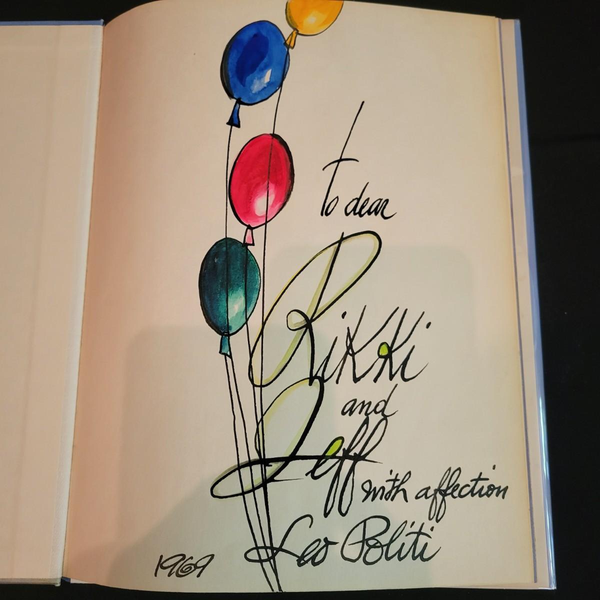 An artistically signed copy of "Piccolo's Prank" by artist and illustrator Leo Politi. There is also a piece of his artwork and multiple books by Leo Politi available in this auction. Shipping available