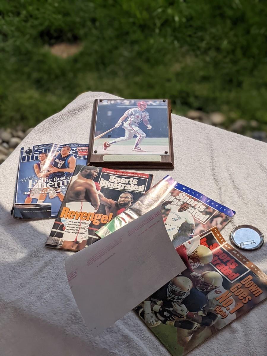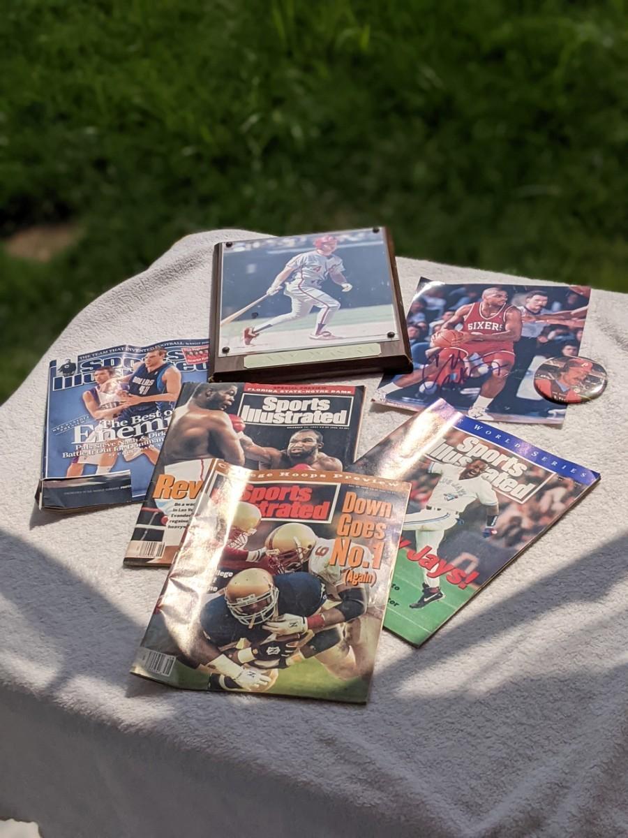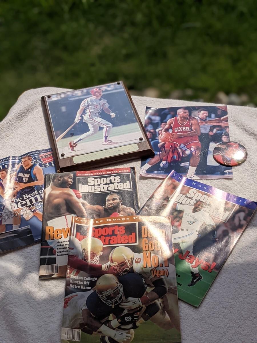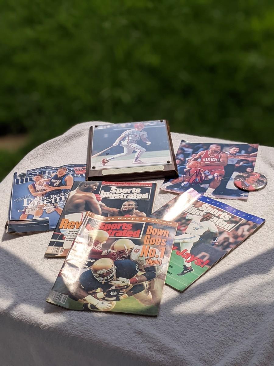 Signed Dave Hollins Jersey, Mike Schmidt Pin, Lenny Dykstra Plaque, Vintage Sports Illustrated Magazines...Please see all pictures as they are the best representation of the items. The pictures show condition, measurements if taken, and what is included in the lot. Due to the large amount that we photograph and the time frame, we are not always able to take measurements. All items unless noted, are pre-owned and have been used. If you purchased furniture, you must bring help. We do not allow one person to carry large furniture out on their own. Bring help, tools and a truck for the safety of our client’s homes, and your personal safety. Company policy. Thank you.