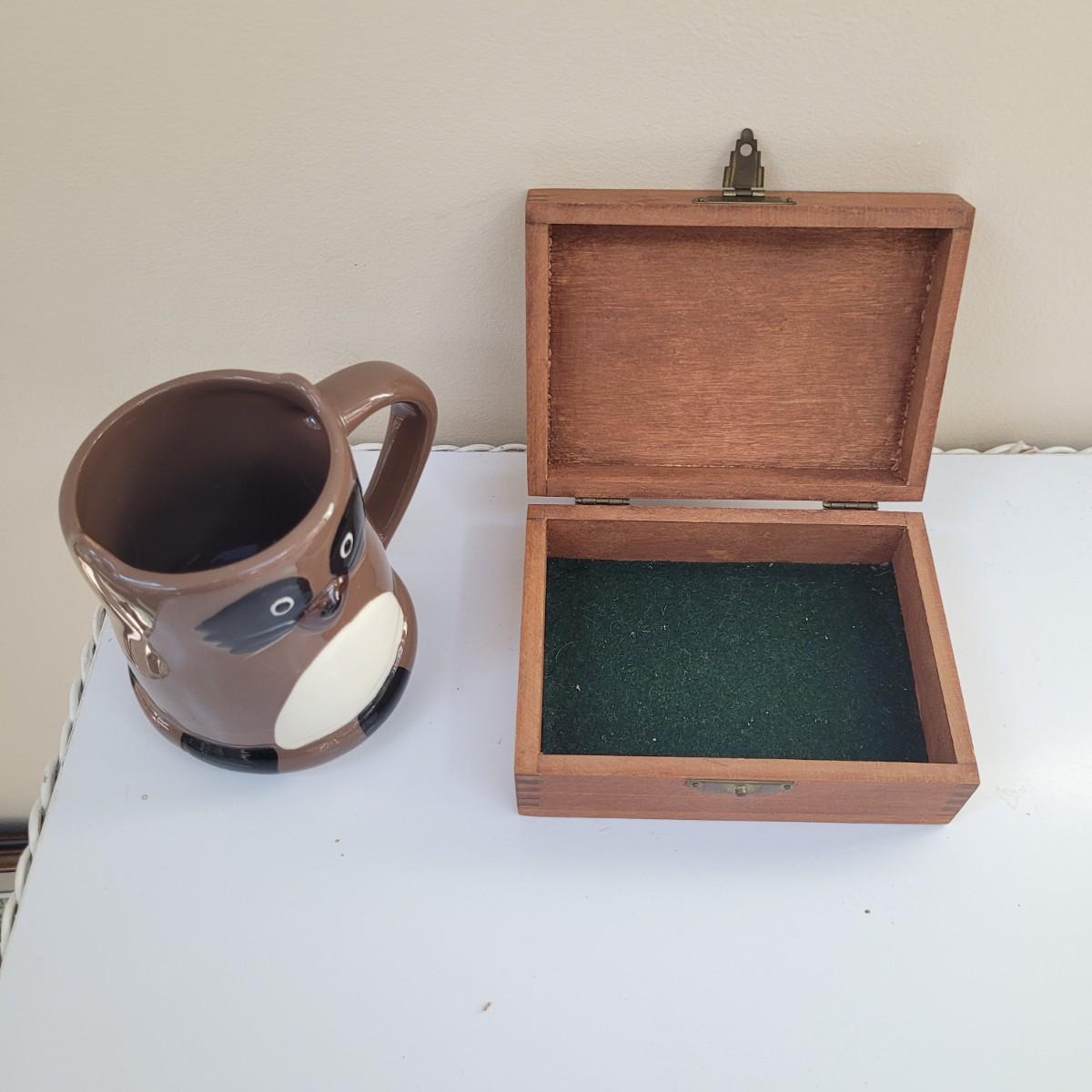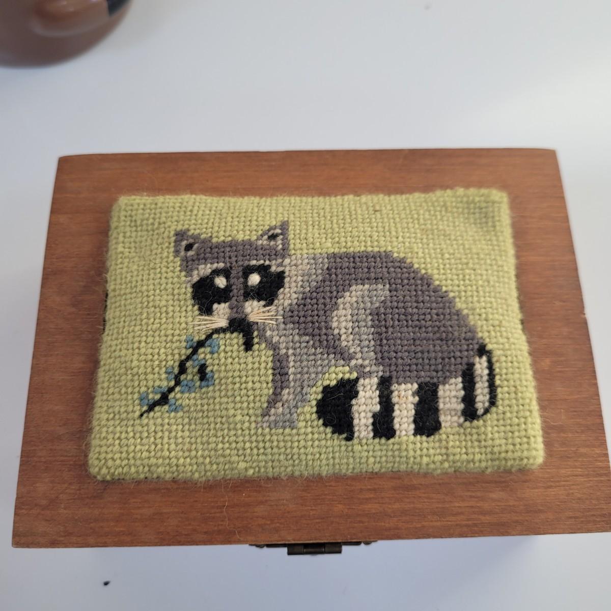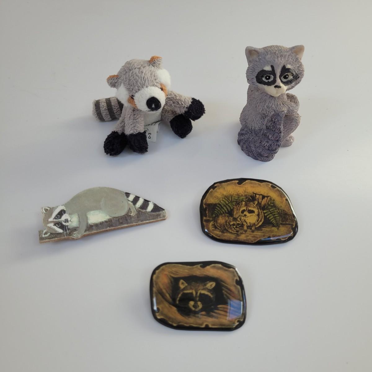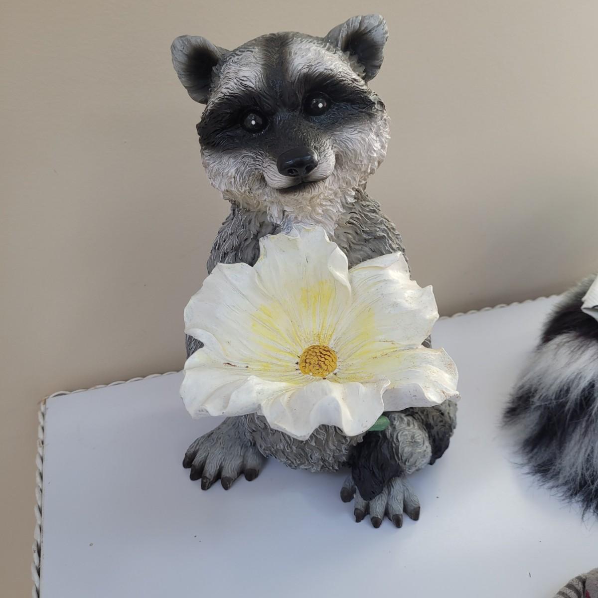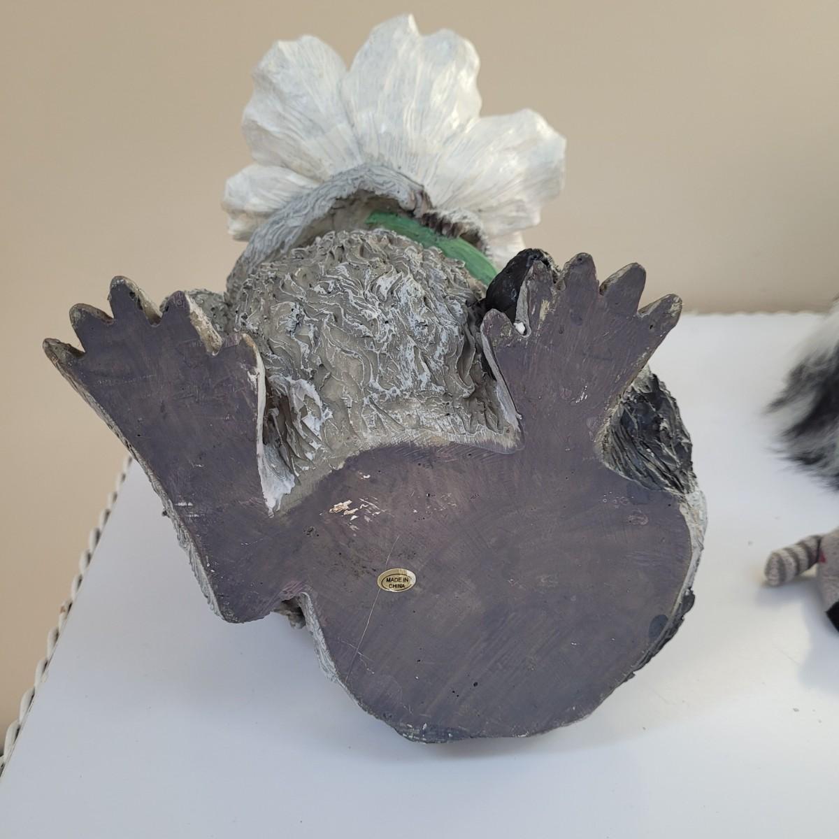 Raccoon enthusiasts will love this adorable assortment of items, including a signed, double matted and framed watercolor print by Don Balke. Glass cover and wood frame with certificate attached to back. Other items include a garden statue, stuffed animal, linens, mug, needlepoint covered small wooden box and small figurines and pins. Linens have some stains (see photos), statue appears to clean easily. Framed art measures approximately 15"L x13"H. Shipping available. Shipping can be costly. We suggest calling our local UPS with dimensions and getting an estimate before bidding: (828) 252-6930.