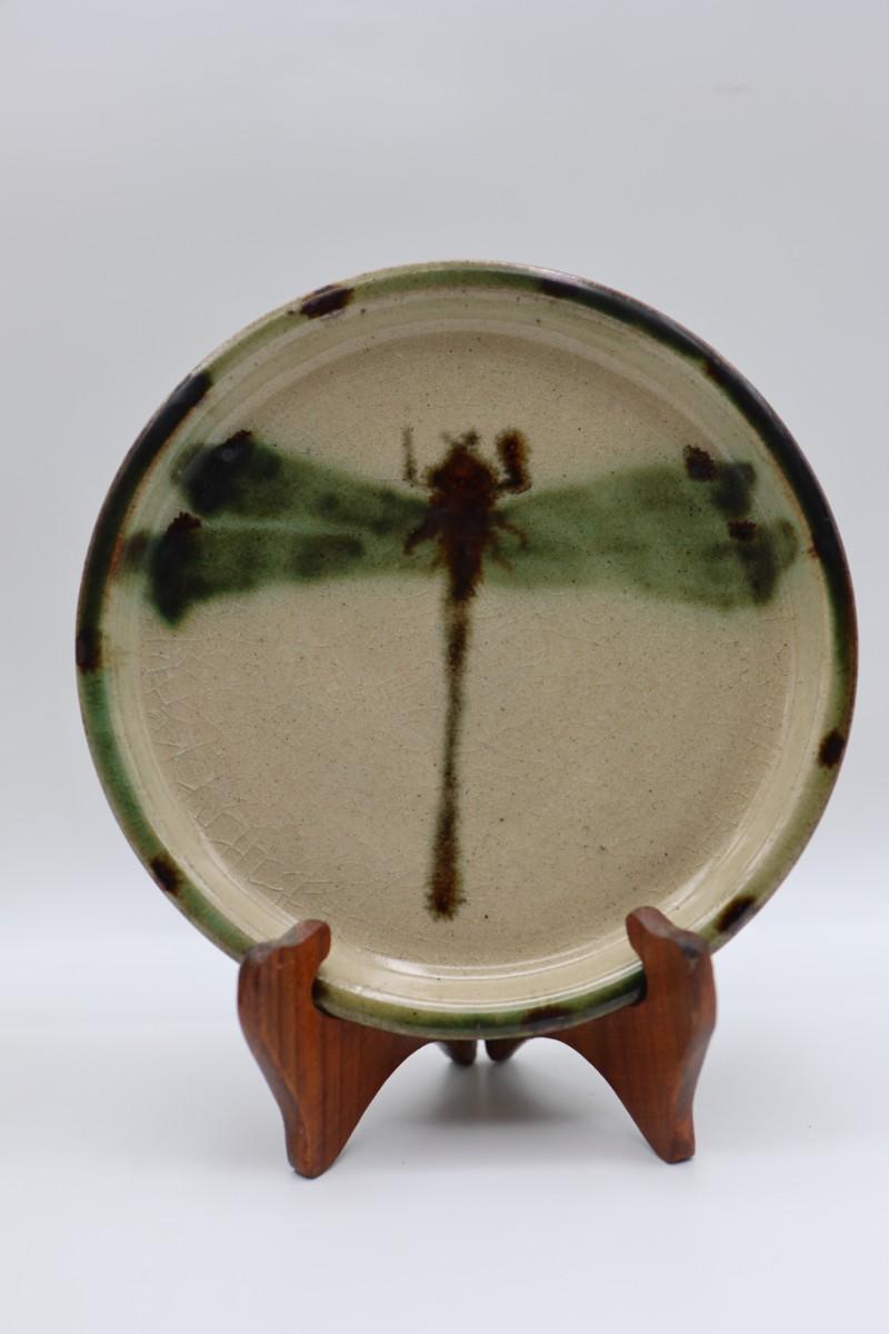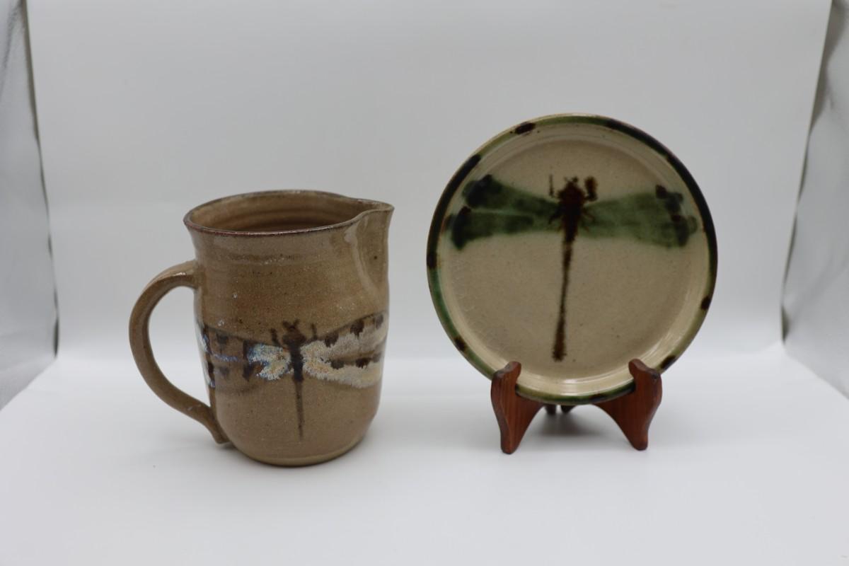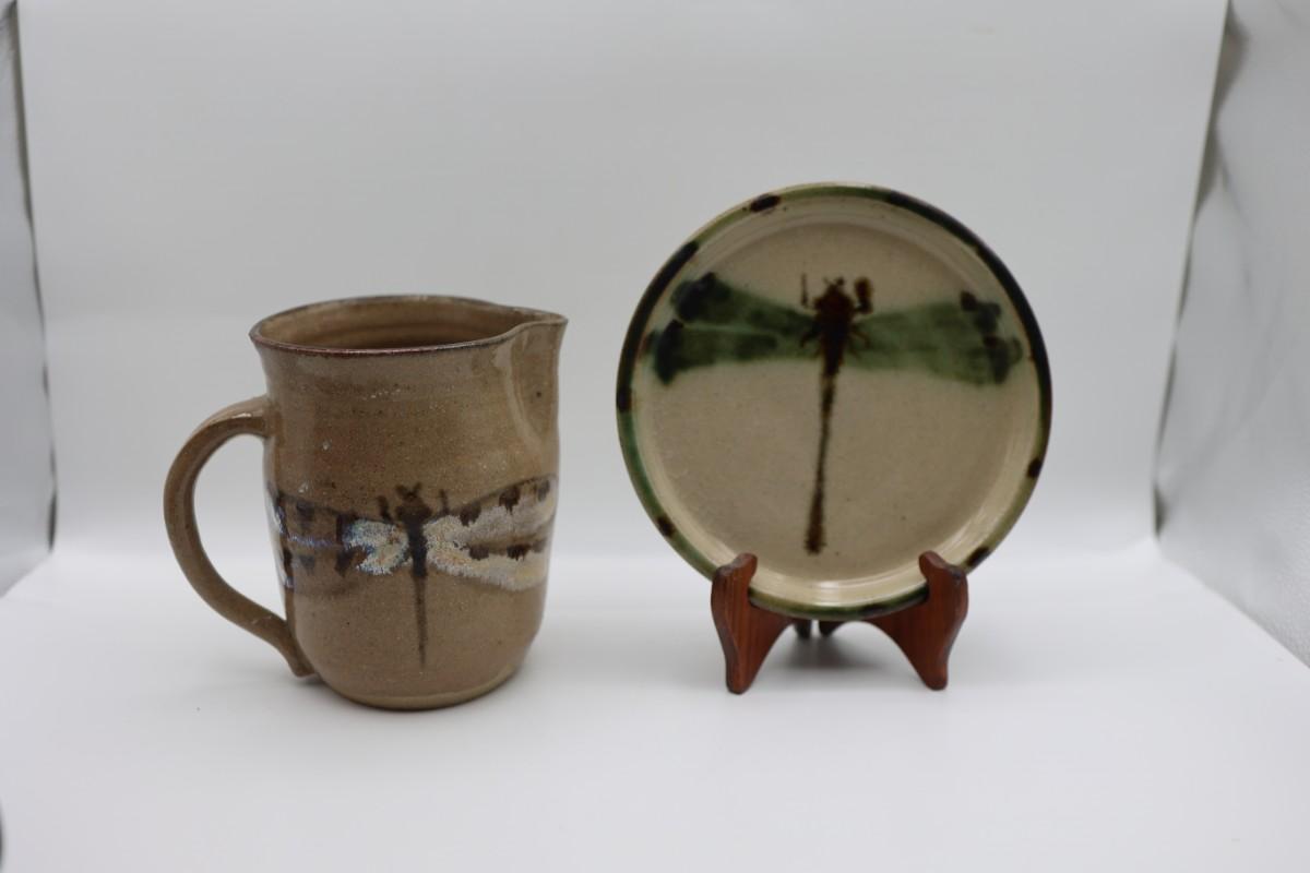 Signed Dragonfly Pottery Plate and Cup by Janet