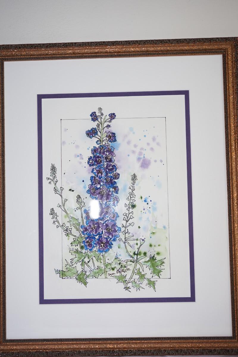 SIGNED DYAN KOOTZKE WATERCOLOR OF DELFINIA FLOWER MATTED AND FRAMED