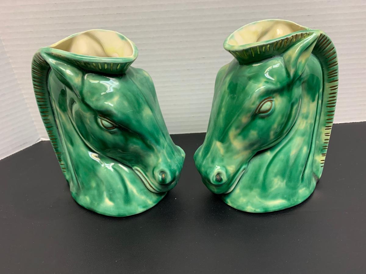 Signed Ella Paulson Horse Pottery Vase Planters