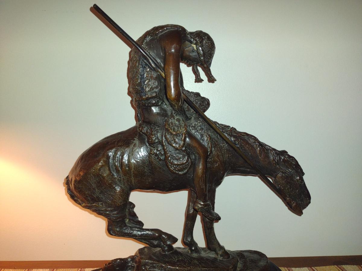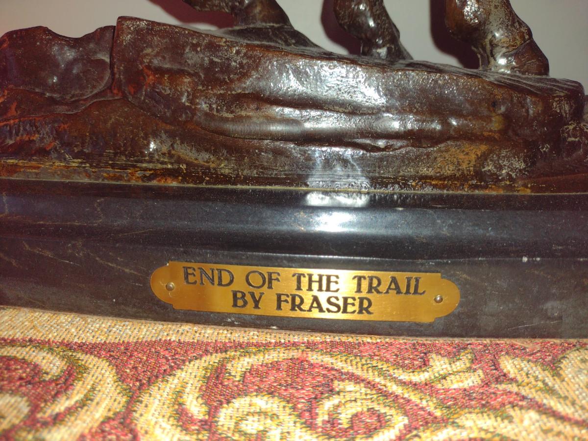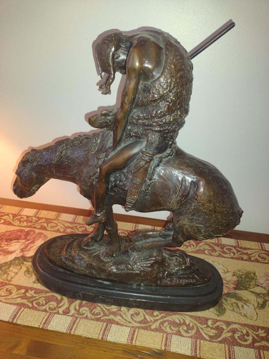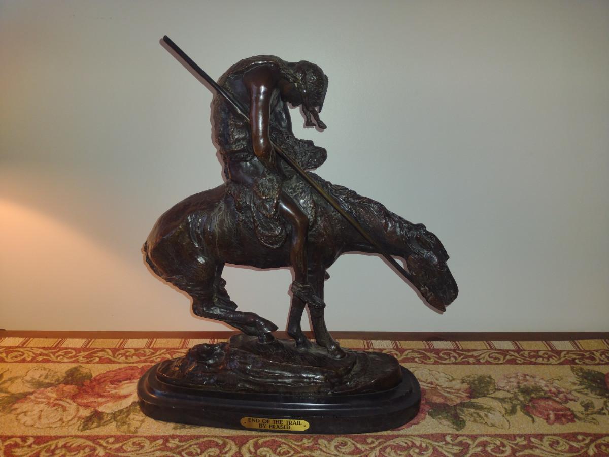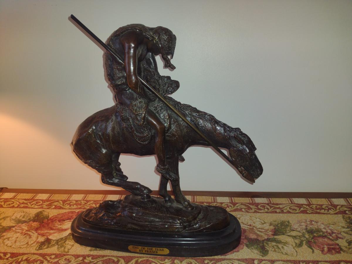 Signed Reproduction 'End of the Trail' Heavy Bronze Statue by James Earle Fraser- Approx 18 1/2" Tall