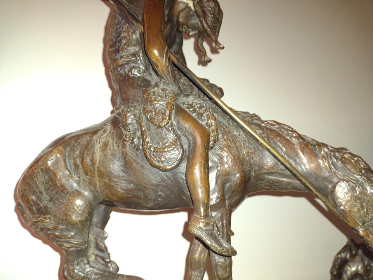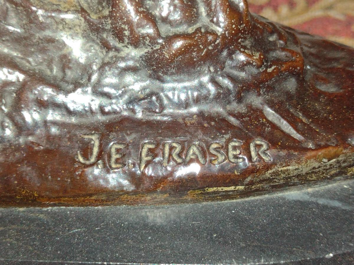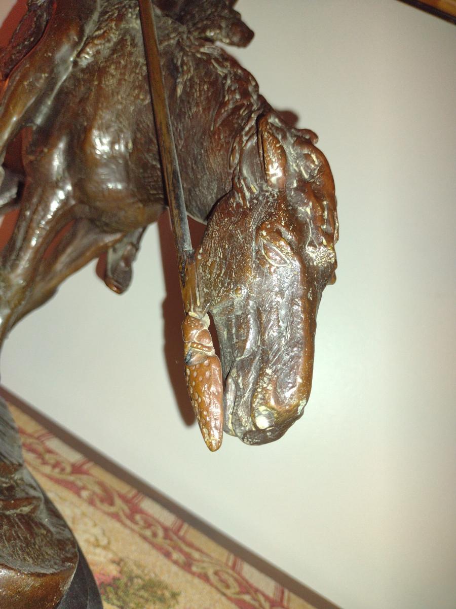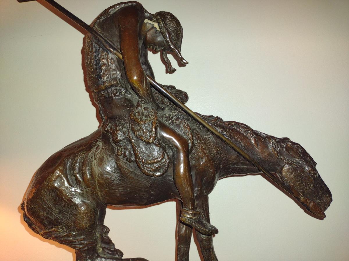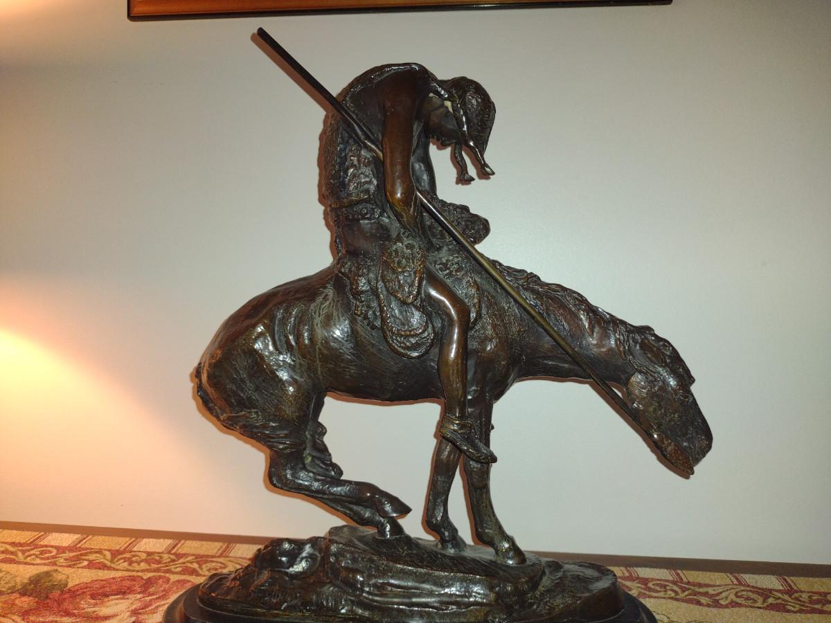 Signed Reproduction 'End of the Trail' Heavy Bronze Statue by James Earle Fraser- Approx 18 1/2" Tall