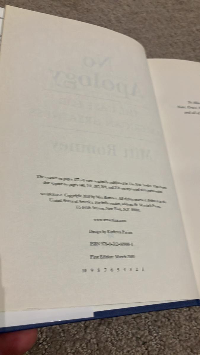 Signed First Edition: Mitt Romney's "No Apology: The Case for American Greatness" - 2010 Hardcover