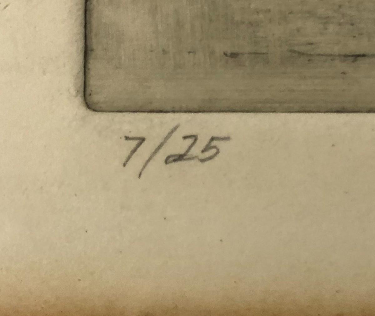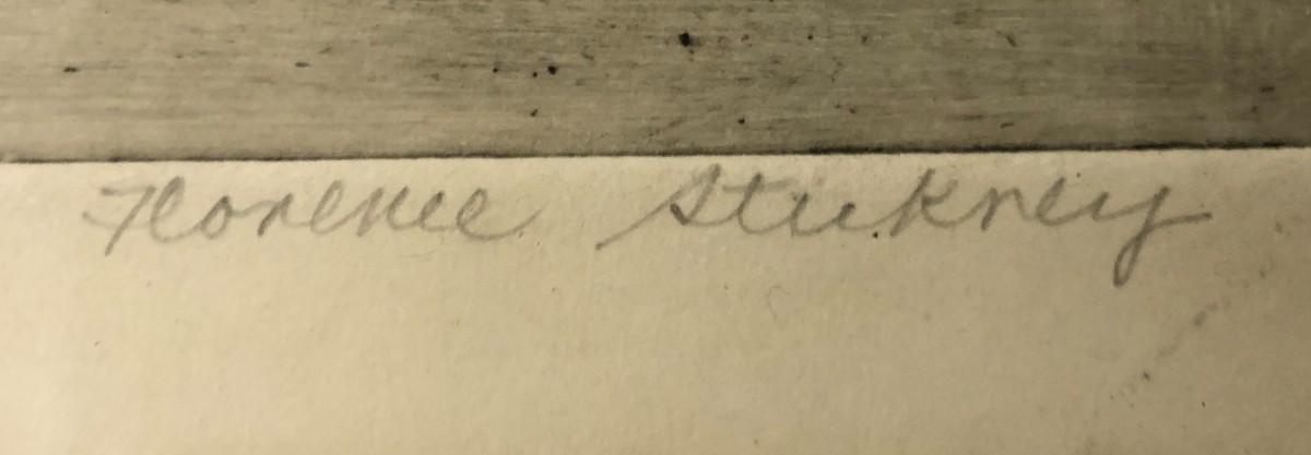 Description: Signed Florence Stickney etching limited edition 7/25. Measurement approximate: Frame: 16 x 12/ Image: 12 x 8” Inches. Material: Framed on paper