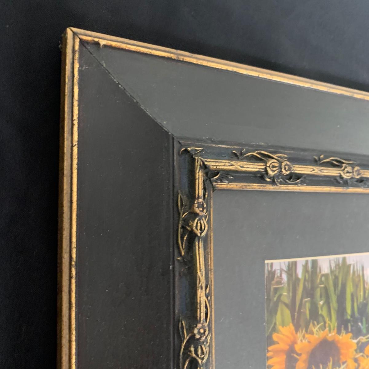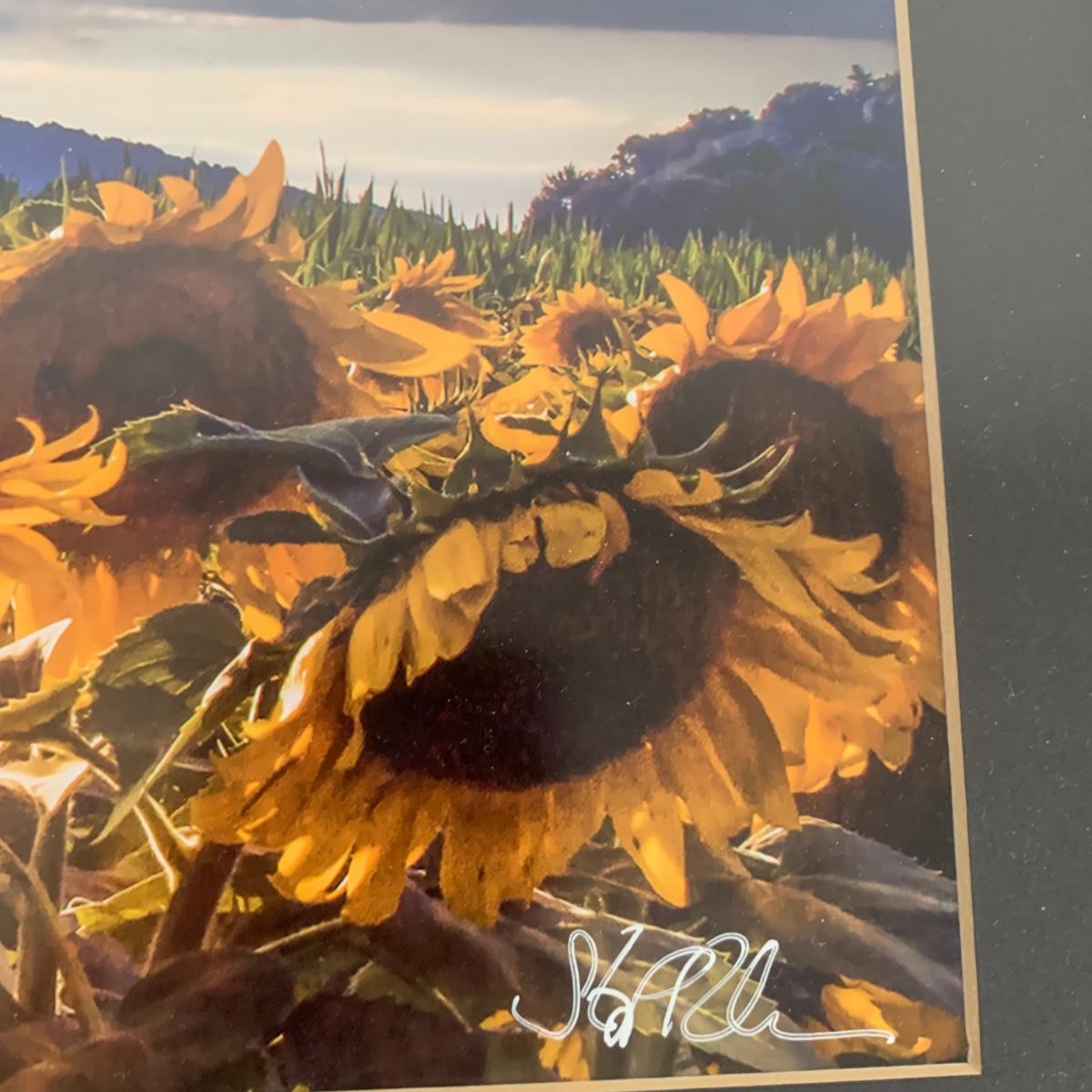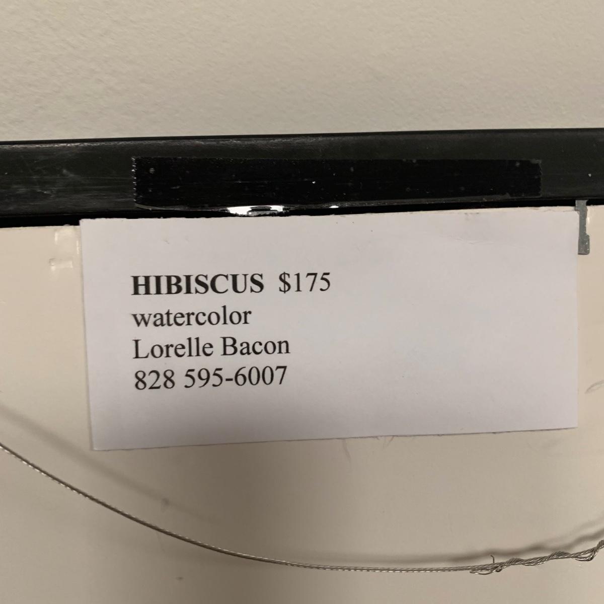 This lot includes three pieces of floral themed art. Included is a sunflower photo, a hibiscus flower by local artist Lorelle Bacon that appears to be water color, and a watercolour art piece signed by a D.K Watson that is numbered. All the pieces have signatures(see photos). The pieces are all framed in metal and wood, and are matted. The largest piece measures about 24in x 12in. Shipping available.