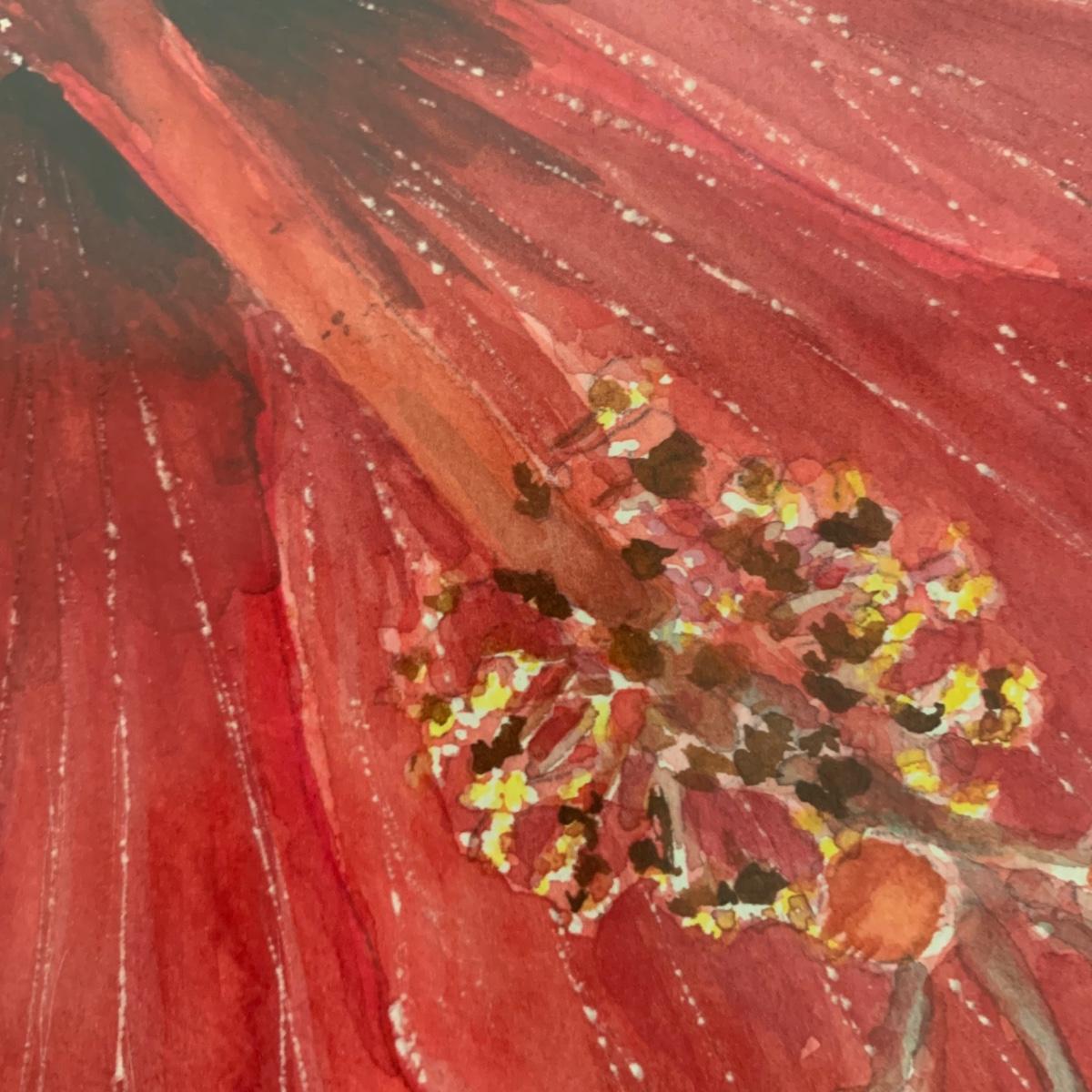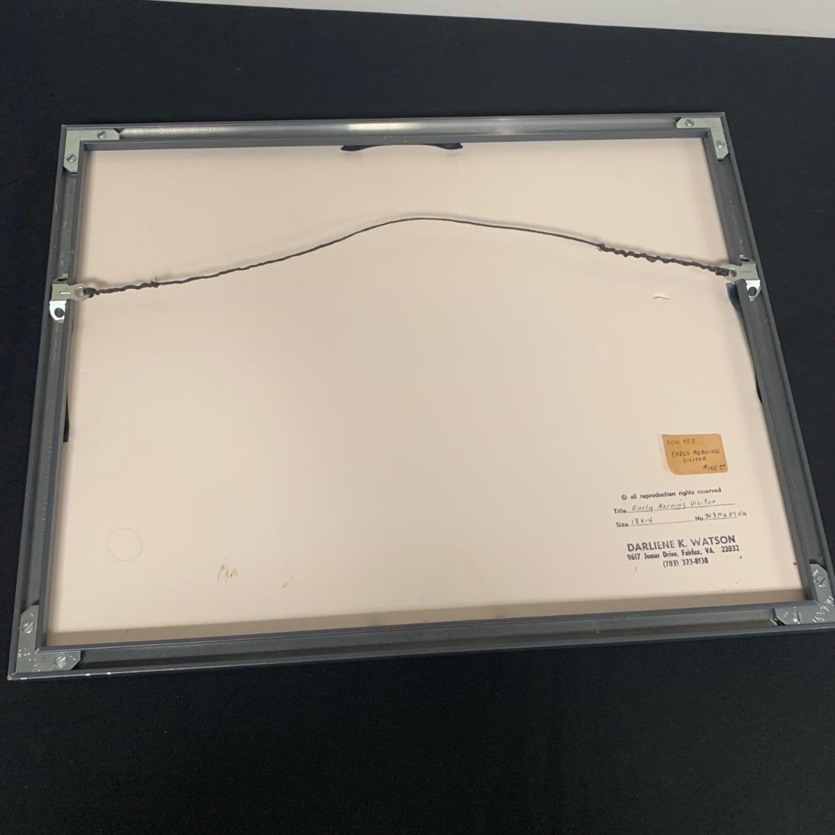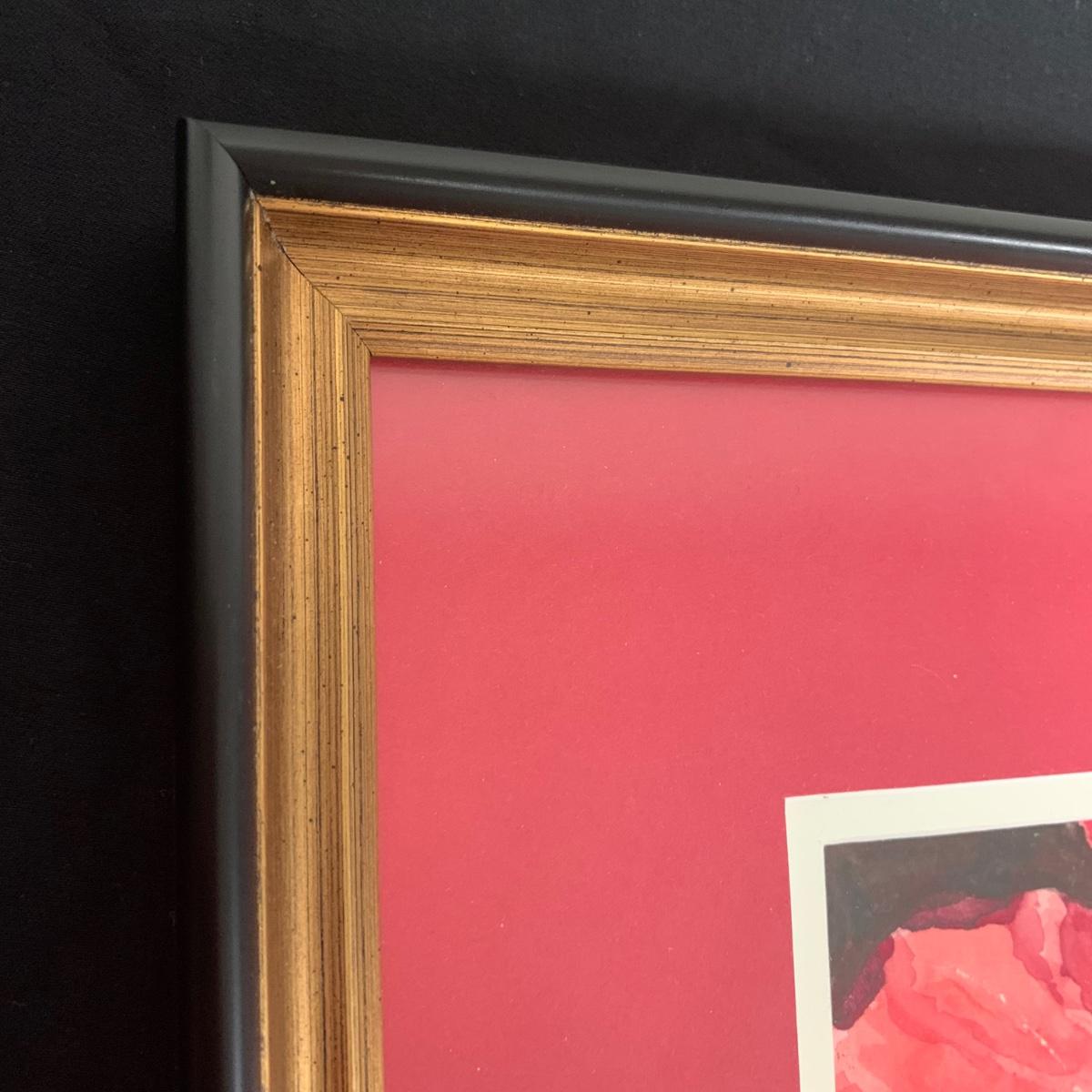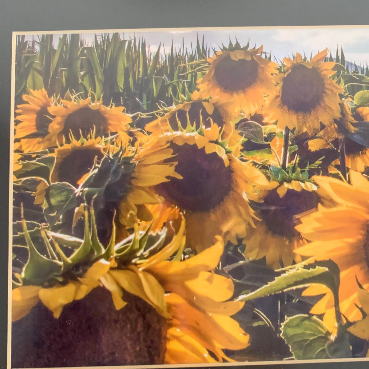This lot includes three pieces of floral themed art. Included is a sunflower photo, a hibiscus flower by local artist Lorelle Bacon that appears to be water color, and a watercolour art piece signed by a D.K Watson that is numbered. All the pieces have signatures(see photos). The pieces are all framed in metal and wood, and are matted. The largest piece measures about 24in x 12in. Shipping available.