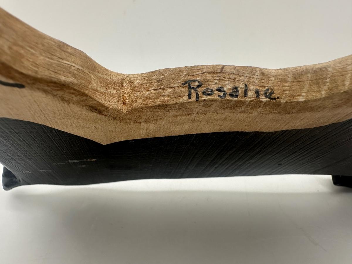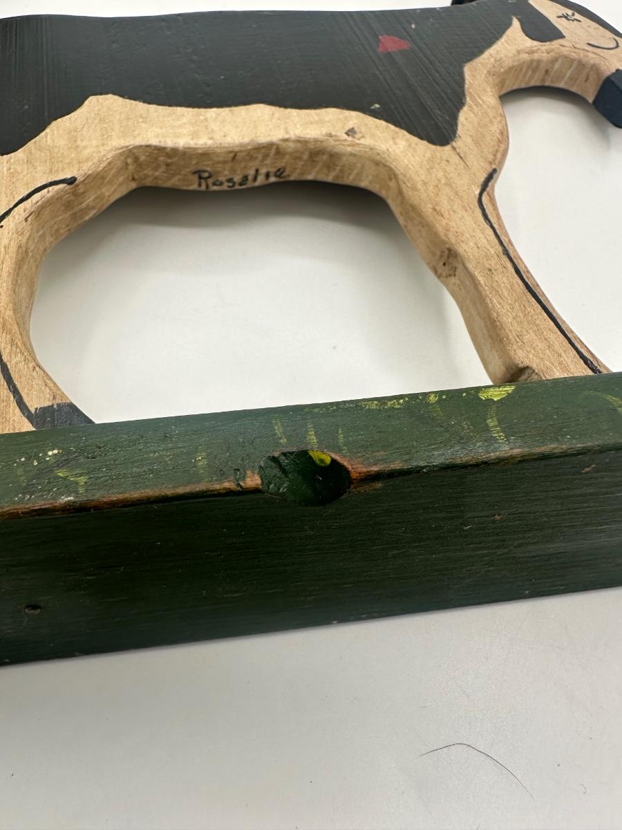 Signed Rosalie on bottom of cow and also RH under base. There is small chip on green base.
