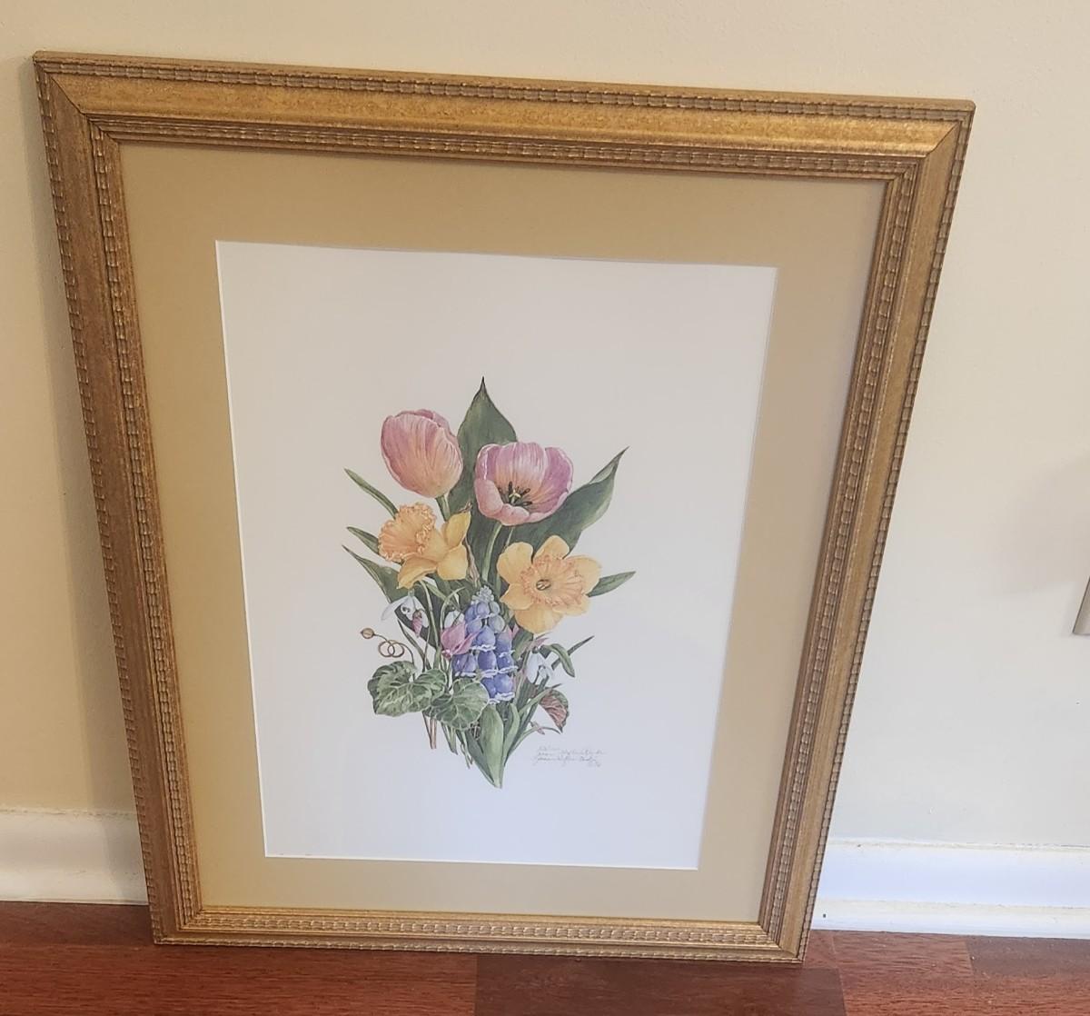 Signed and Numbered 53/1100 Joan Heflin Rankin, Local Artist, Framed Flower Print 24" X 19" painted in 1996