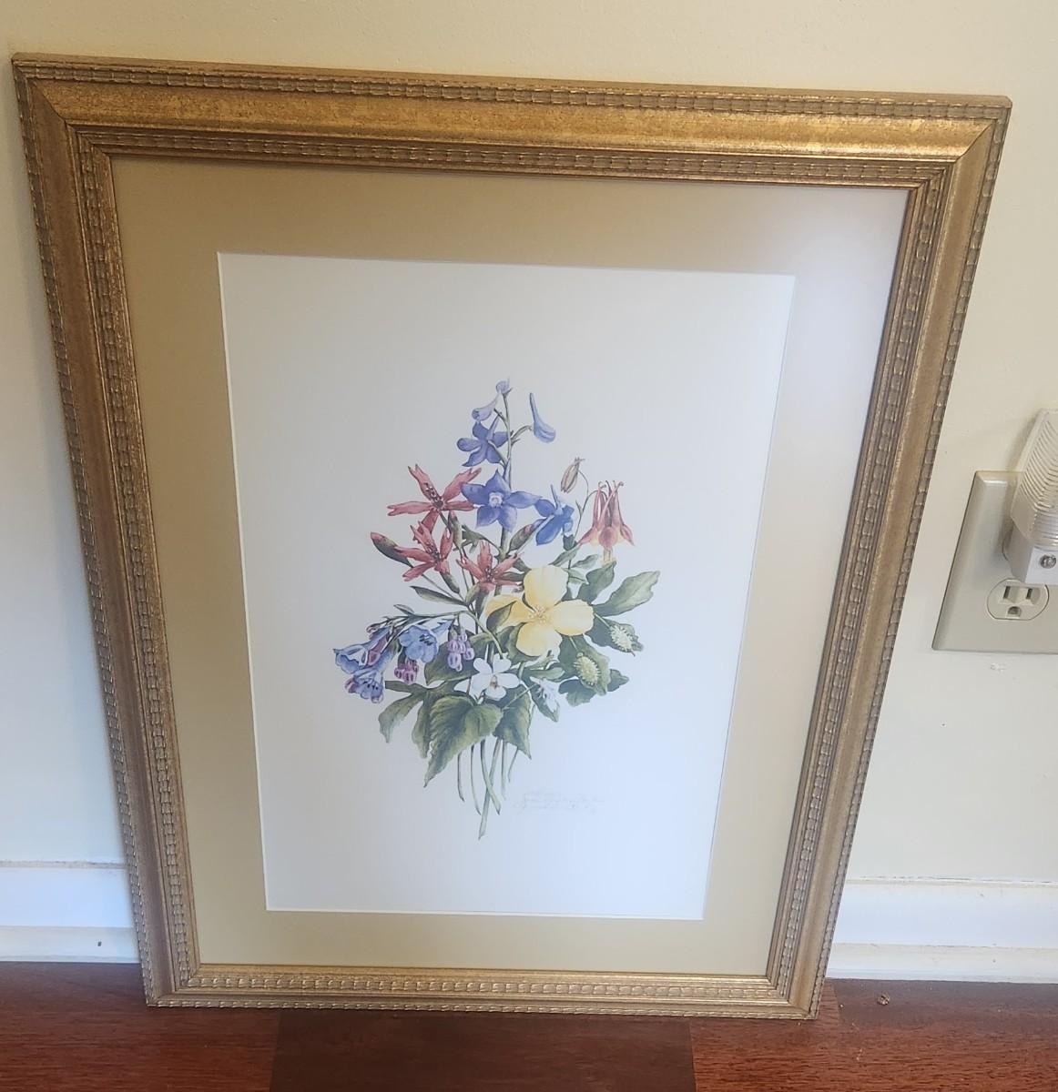 Signed and Numbered 275/1250 Joan Heflin Rankin, Local Artist, Framed Flower Print 17" X 23"