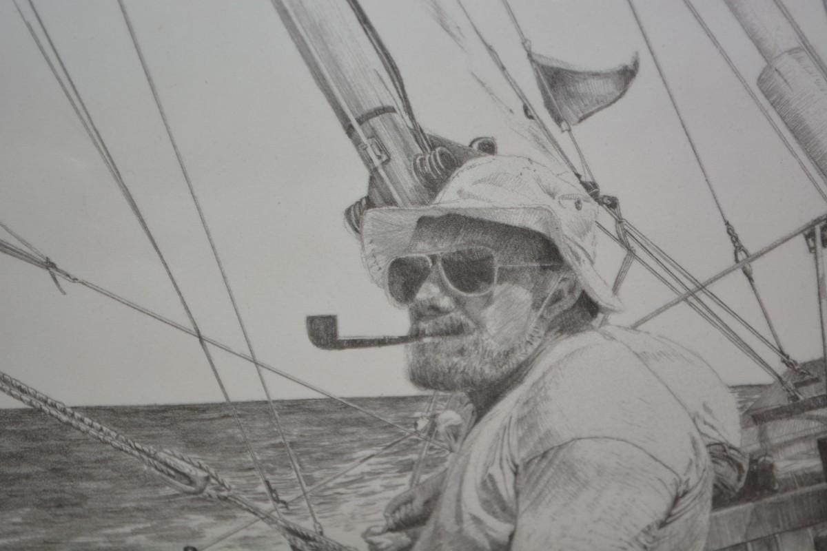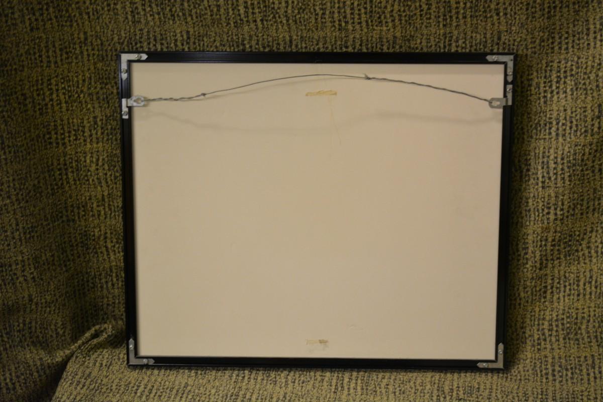 In good condition, the matting is off. Frame measures 17.25"x14.25".