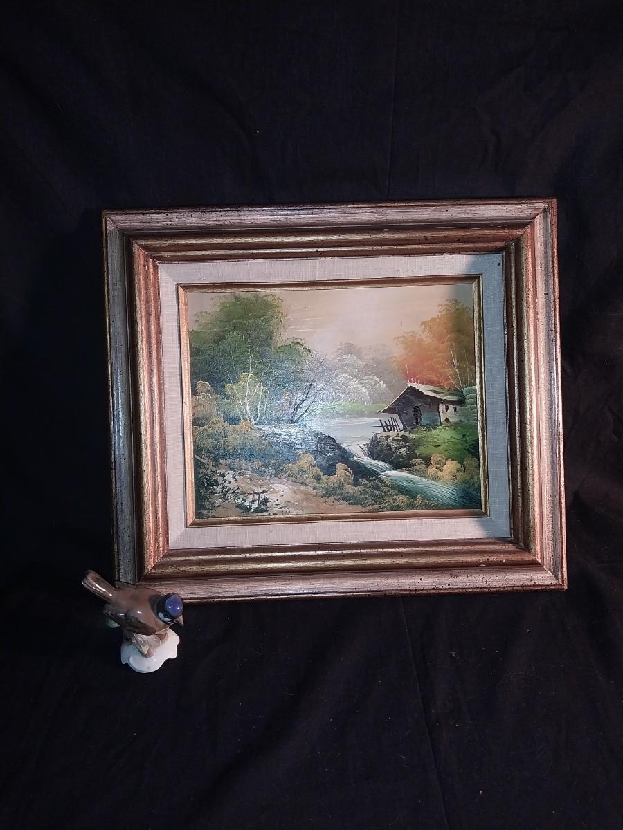 SIGNED FRAMED OIL PAINTING AND COLLECTIBLE PORCELAIN BIRD