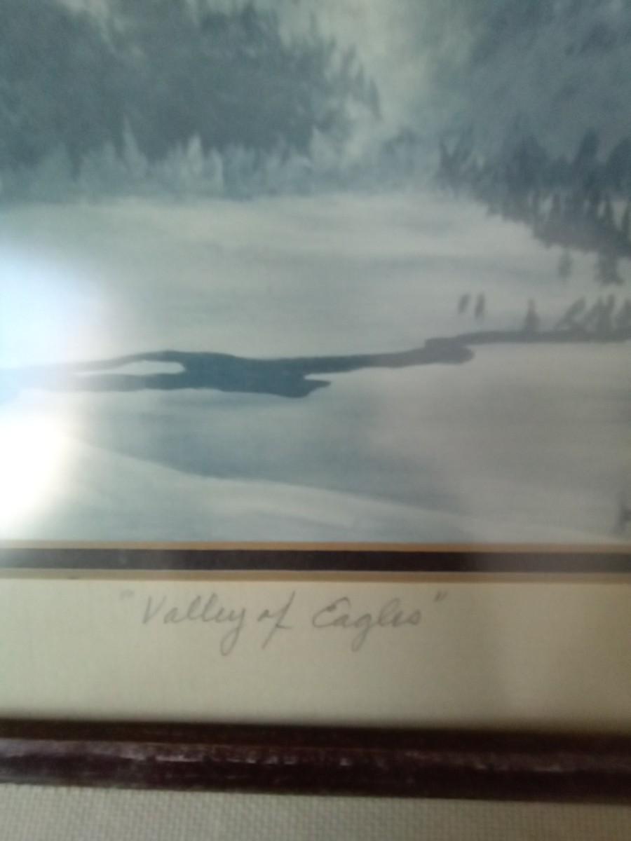 SIGNED FRAMED "VALLEY OF EAGLES" APPROX. 17X15