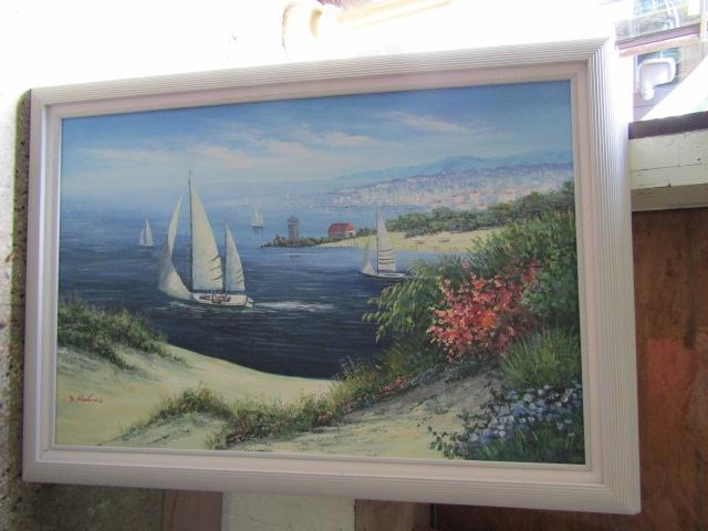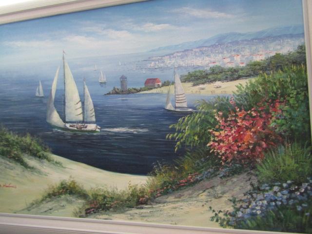 Signed, Framed Wall Art:  Boat in the Cove (Loc)- 28" x 42 3/4"
