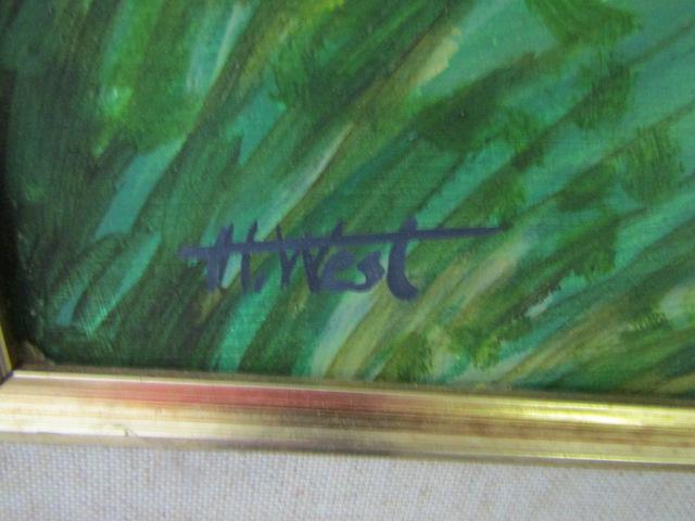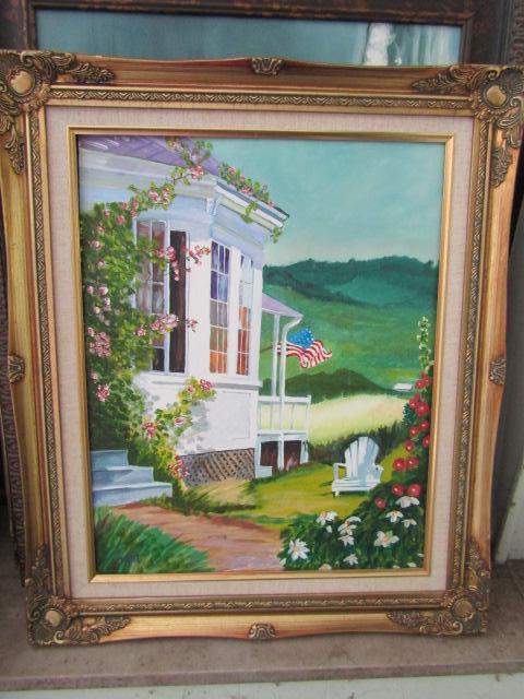 Signed, Framed Wall Art:  House with Flag (Loc)- 21" x 25"