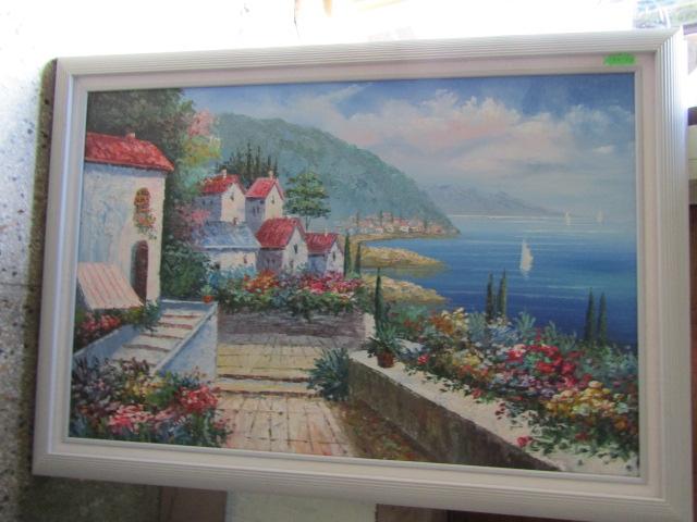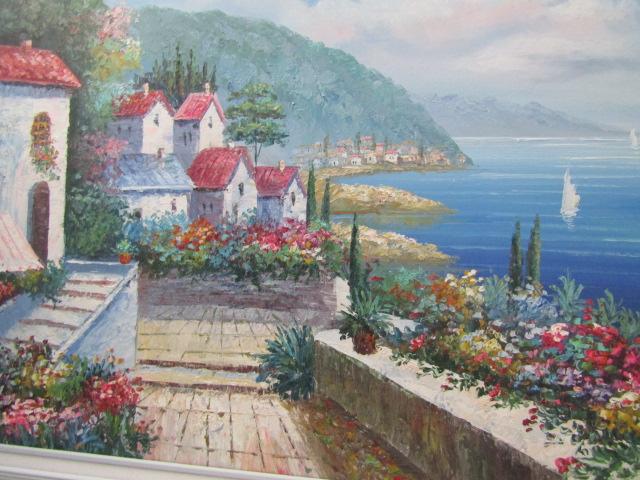Signed, Framed Wall Art:  Red Roofs by the Sea (Loc)- 28 1/2" x 42 1/4"