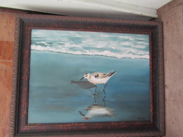 Signed, Framed Wall Art:  Wading Pelican (Loc)- 23 1/2" x 29 1/2"