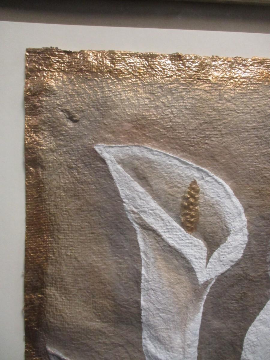 Signed Framed White Calla Lily Relief Painting Art On Canvas 26 1/2" x 33 3/4