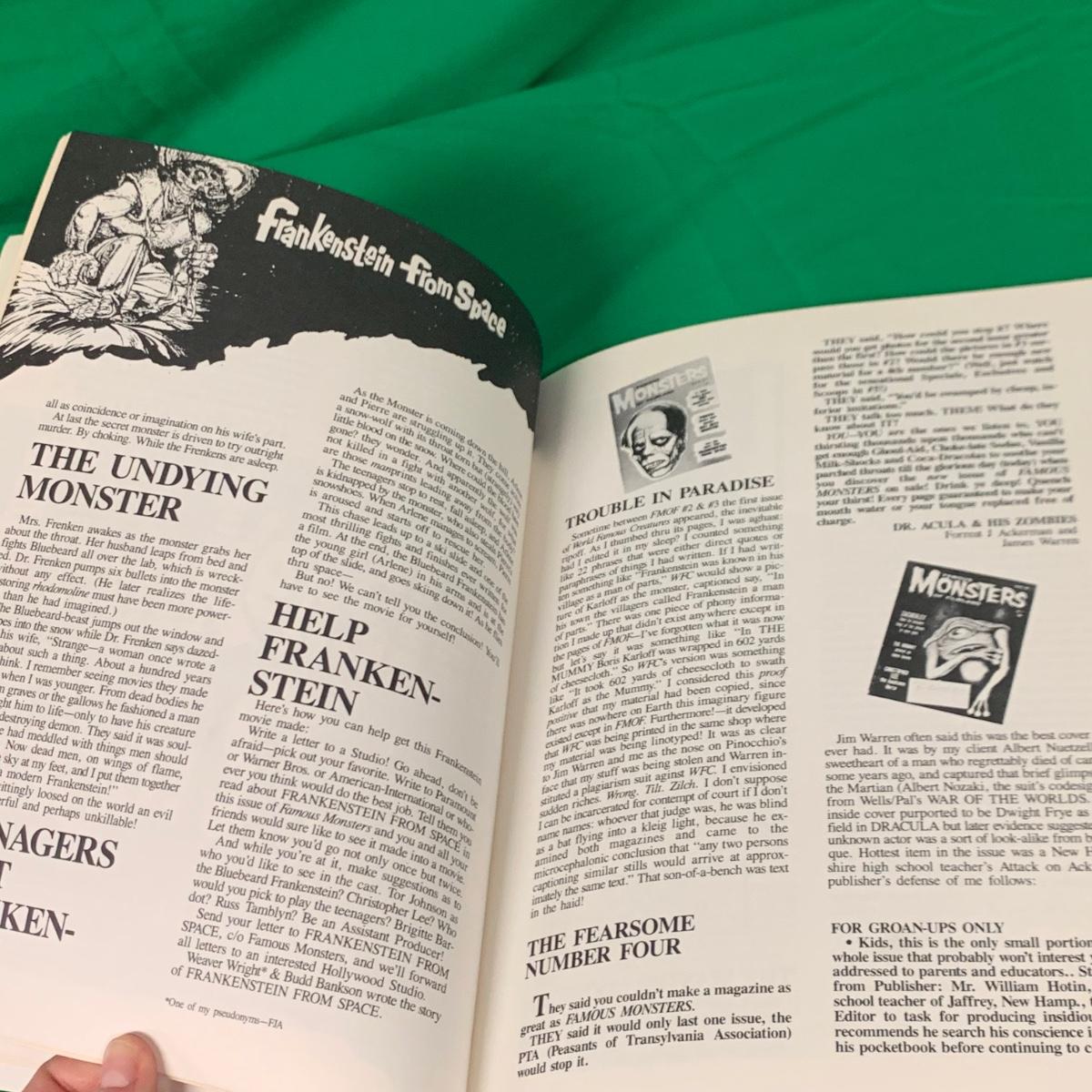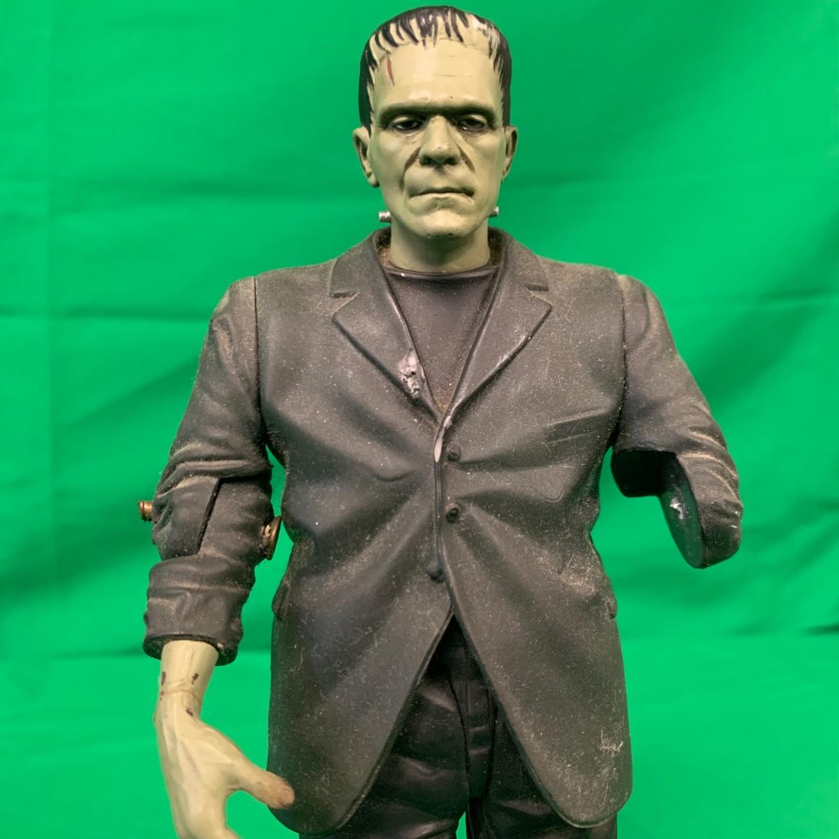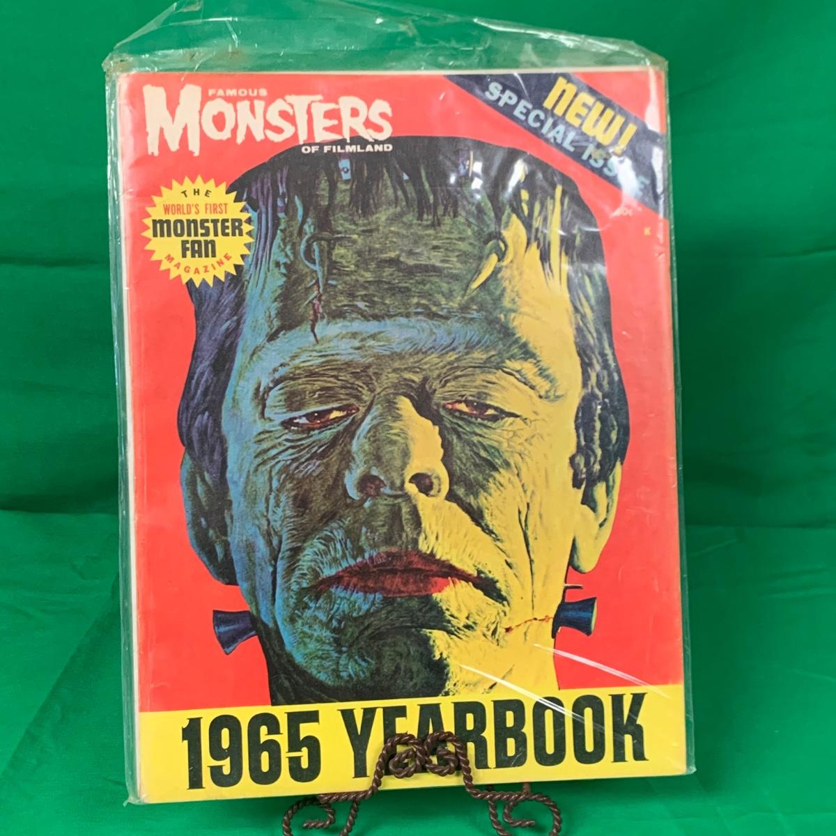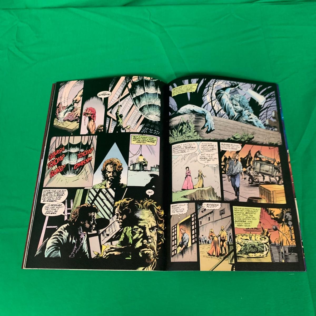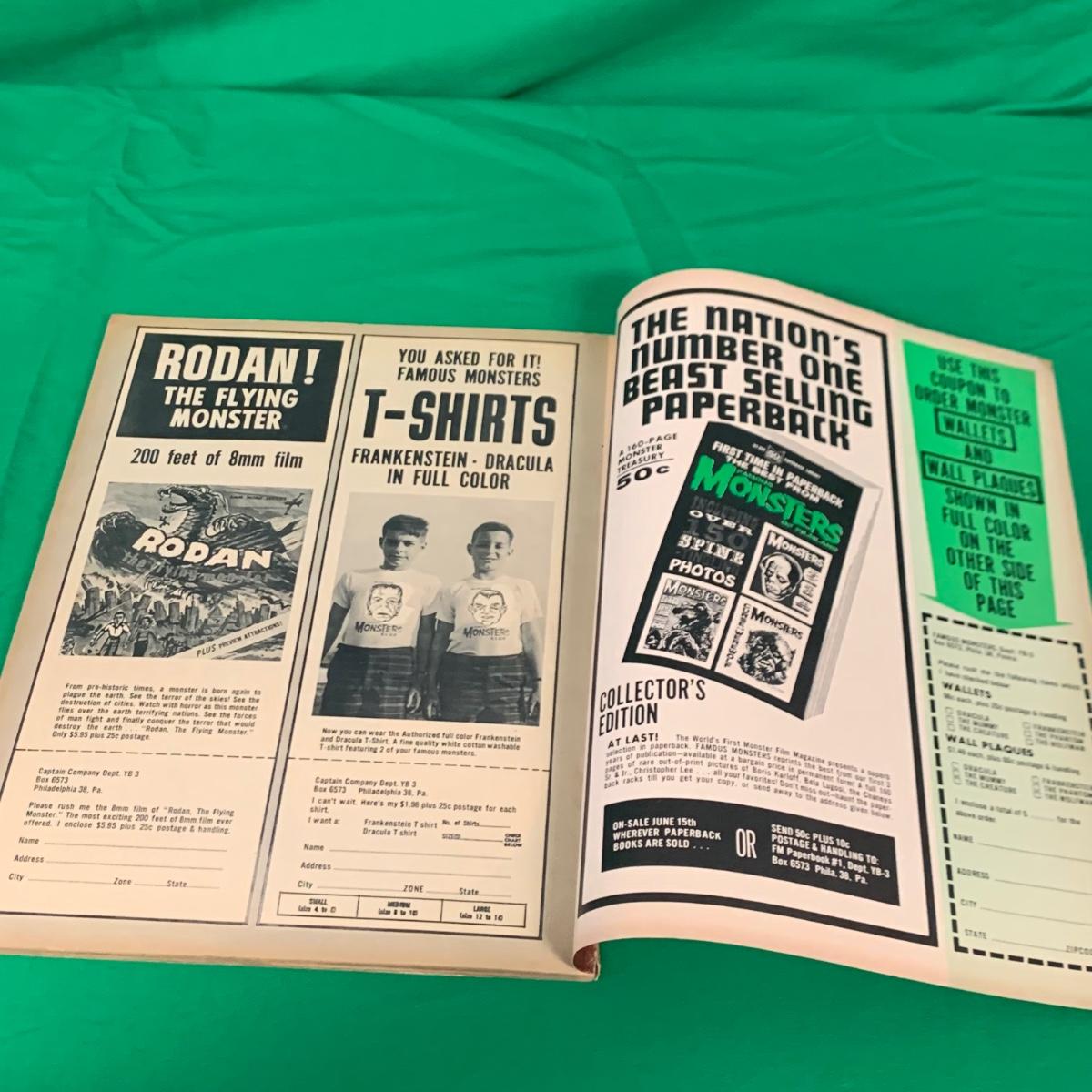 A variety of Frankenstein and other monster related items. Included is a giclee print of original art by Al Ramirez that has been pencil-signed by the artist, as well as a Frankenstein action figure, two issues of “Famous Monsters of Filmland”, a “Mary Shelley’s Frankenstein” by Topps Comics, and “Gorezone Special: Frankenstein”. The giclee print is 11” x 13.5”H. Note the the arm on the action figure is not attached; it could be glued back on.