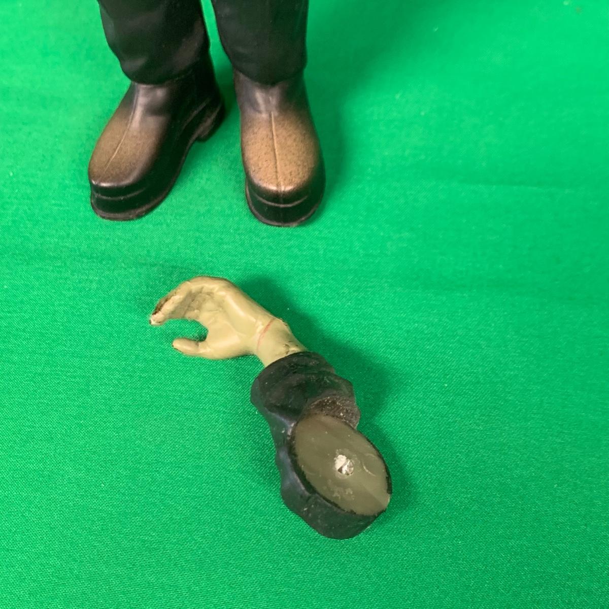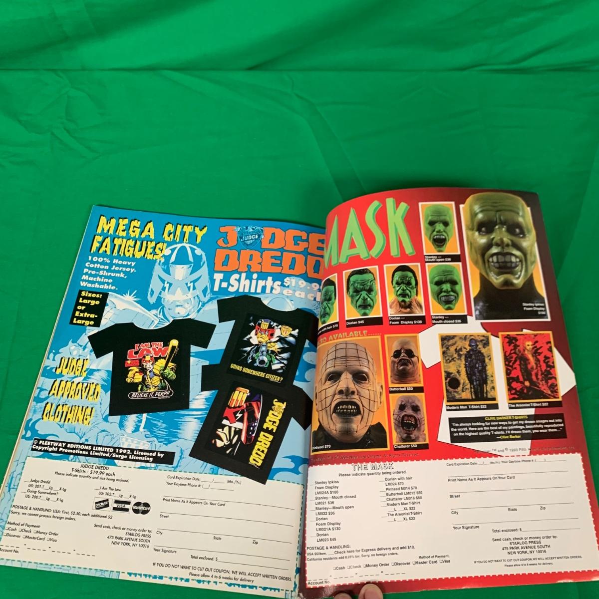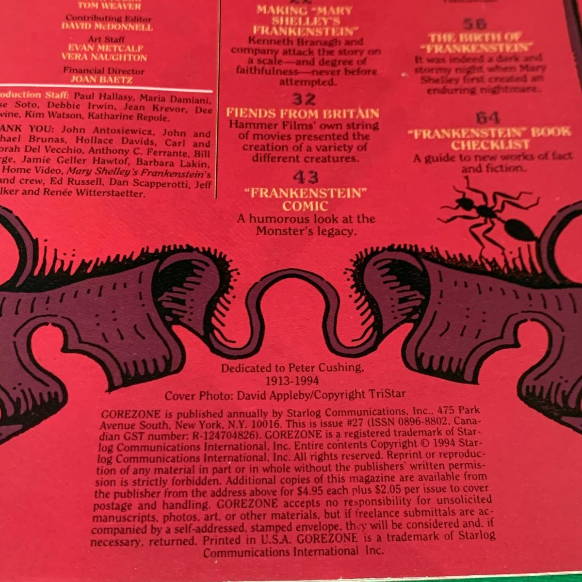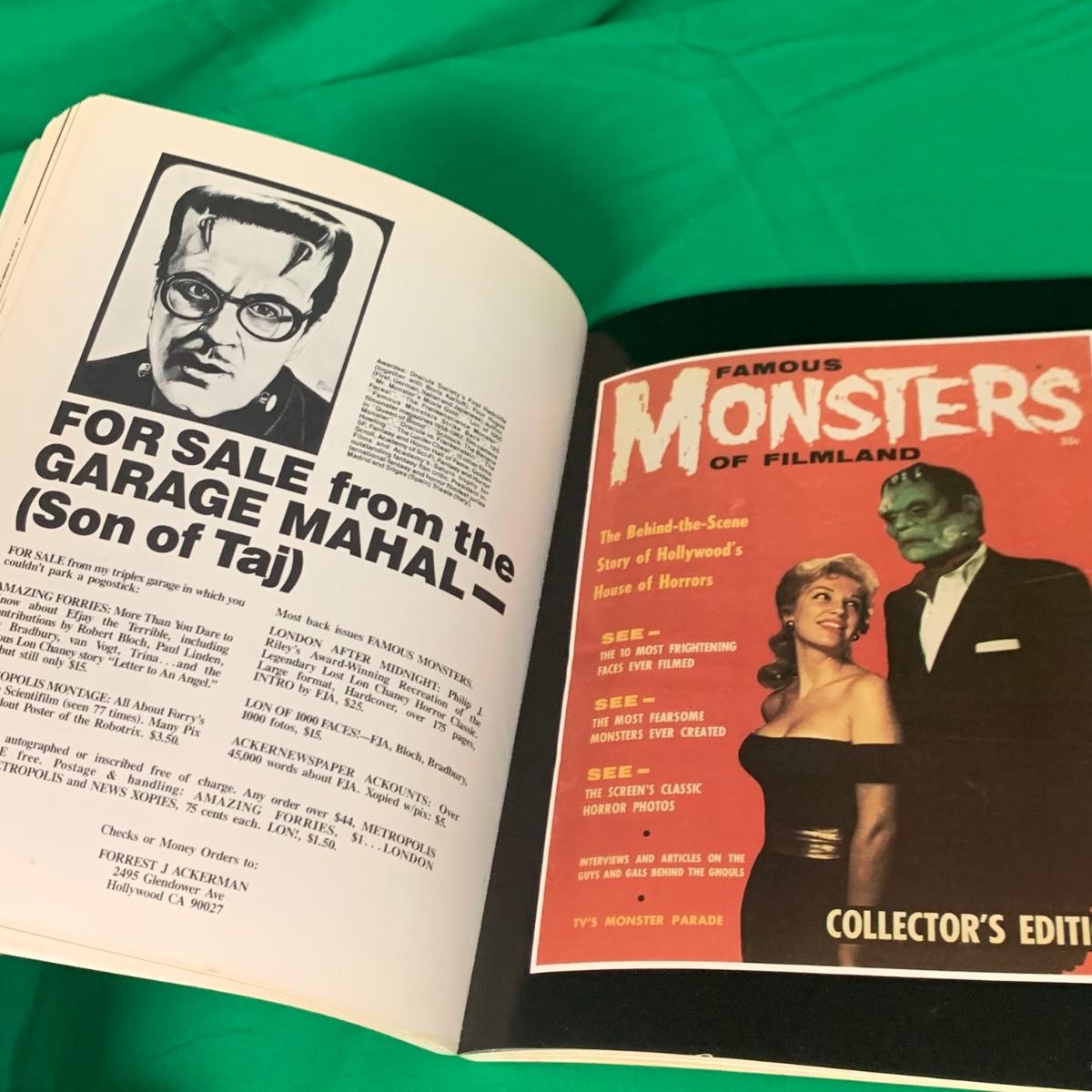 A variety of Frankenstein and other monster related items. Included is a giclee print of original art by Al Ramirez that has been pencil-signed by the artist, as well as a Frankenstein action figure, two issues of “Famous Monsters of Filmland”, a “Mary Shelley’s Frankenstein” by Topps Comics, and “Gorezone Special: Frankenstein”. The giclee print is 11” x 13.5”H. Note the the arm on the action figure is not attached; it could be glued back on.