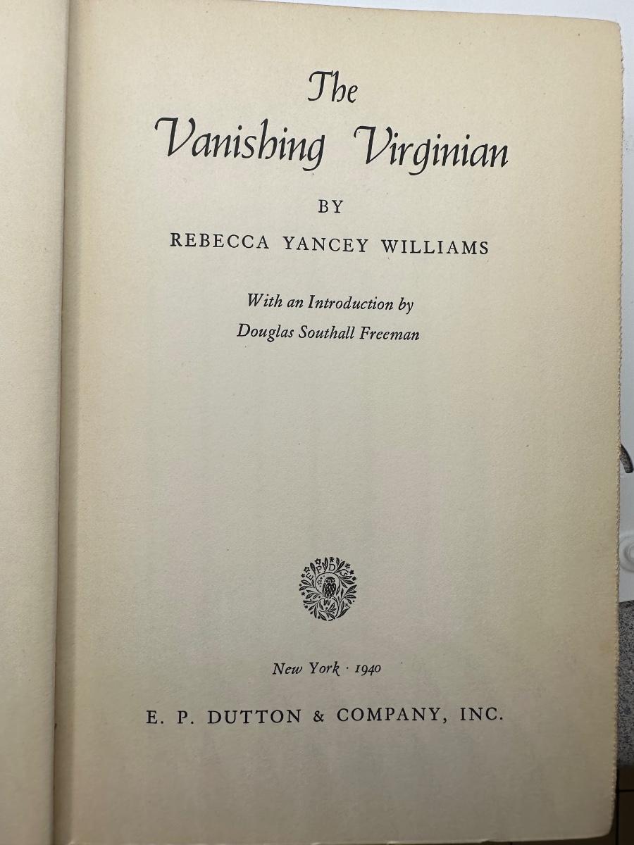 SIGNED from 1940, The Vanishing Virginian, By: Rebecca Yancey Williams