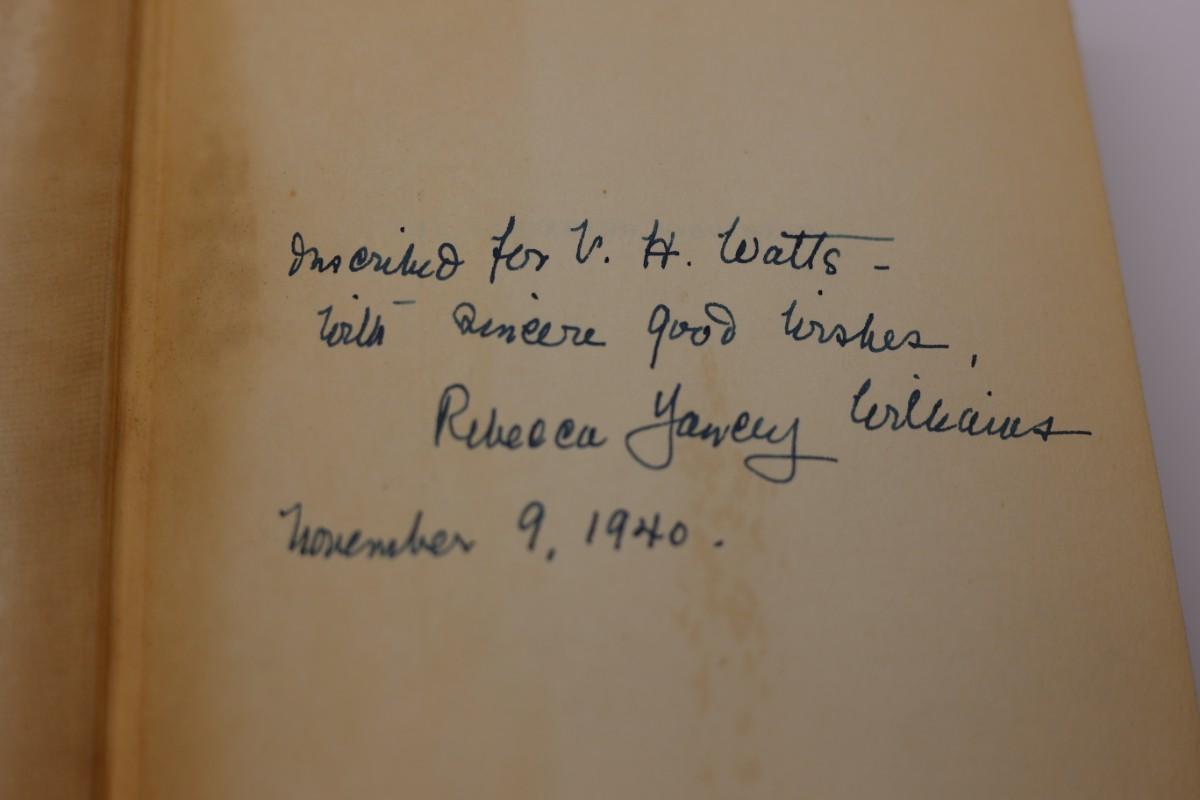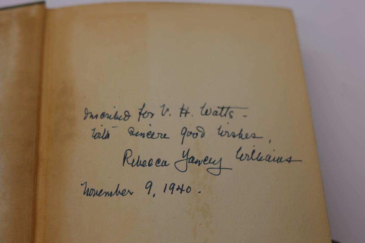 Signed by the author, Rebecca Yancey Williams with a note and dated. Inside pages are in great condition, given the age.