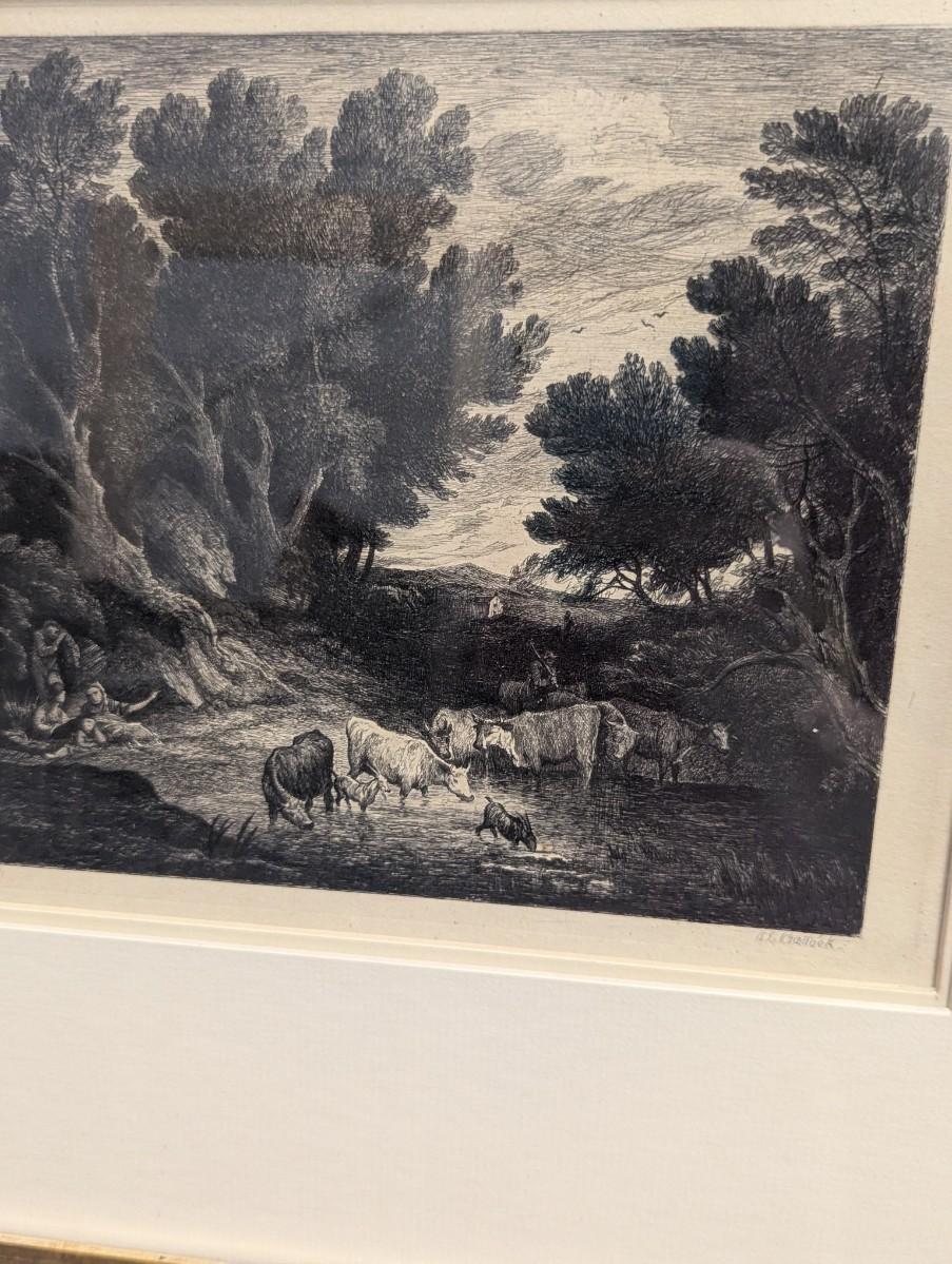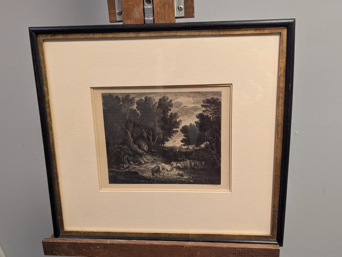 16 3/4" x 18" Signed Gainsborough Richard Samuel Chattock Etching