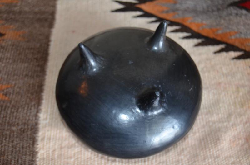 SIGNED GARCIA BLACK 6" DIAMETER FOOTED POT BLACK CLAY