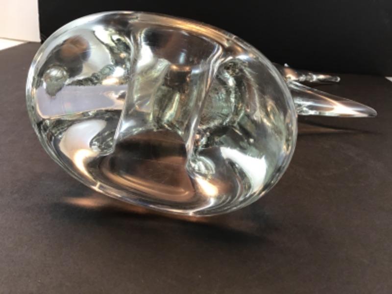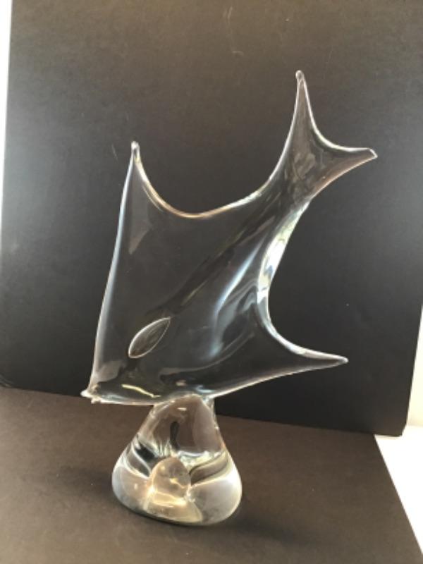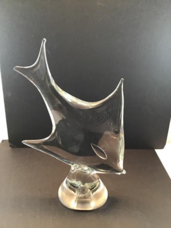 Gorgeous, vintage glass freestanding sculpture of a fish. Very modern in design. Measures 16 inches by approximately 10 inches.