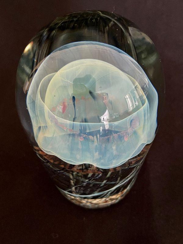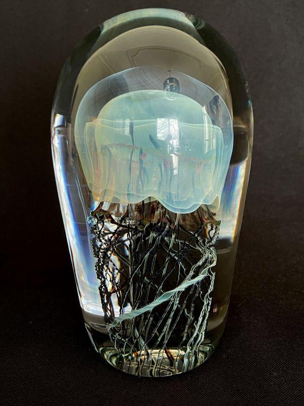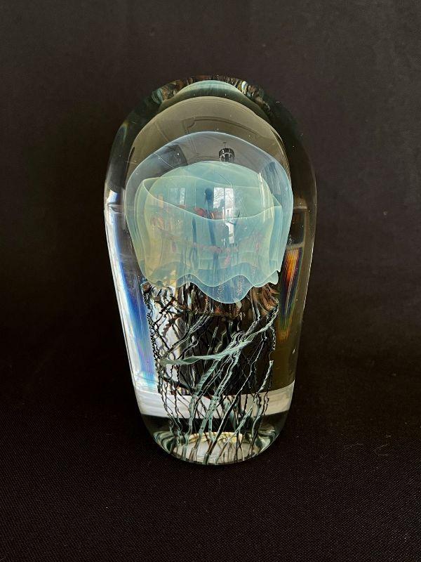 HAND BLOWN STUDIO ART GLASS MOON JELLY FISH SCULPTURE