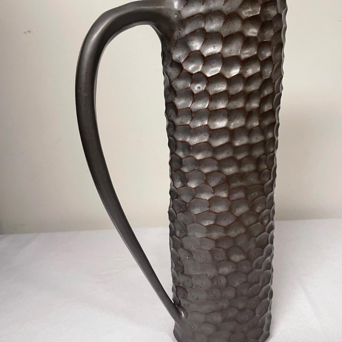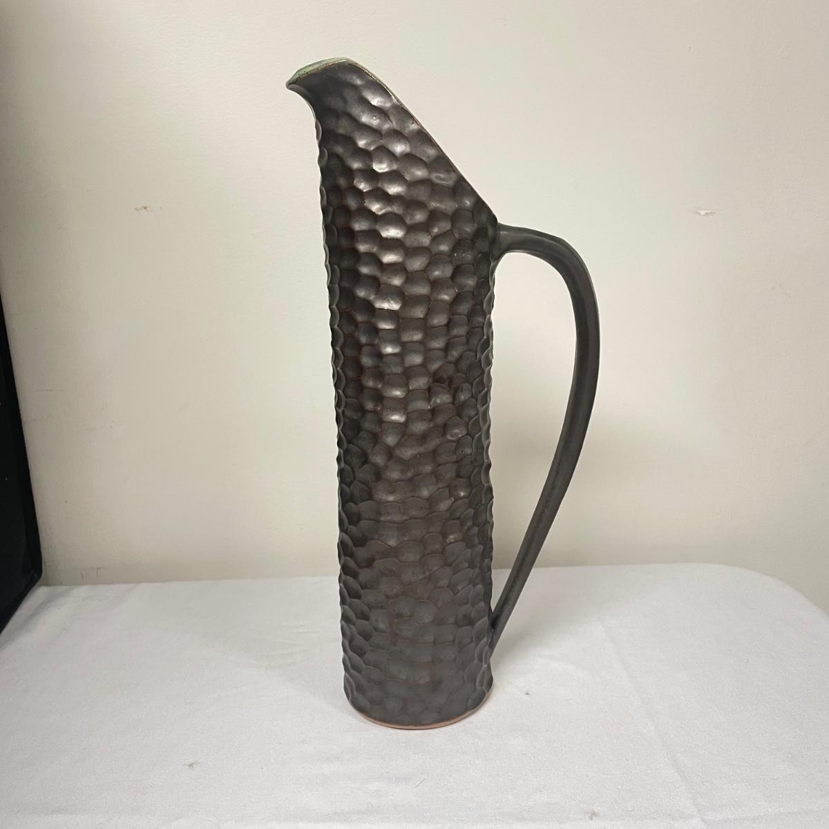Signed, Hand Carved Pottery Tall Pitcher(BO-RG)